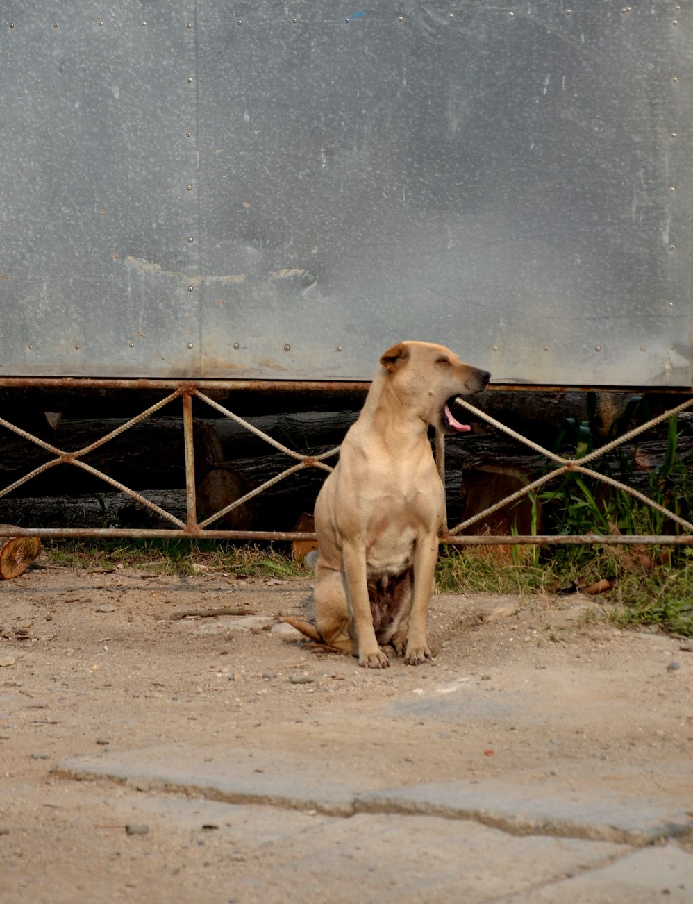 太阳才刚刚出来,狗狗都已经慵懒的不行了,哈切连天的了