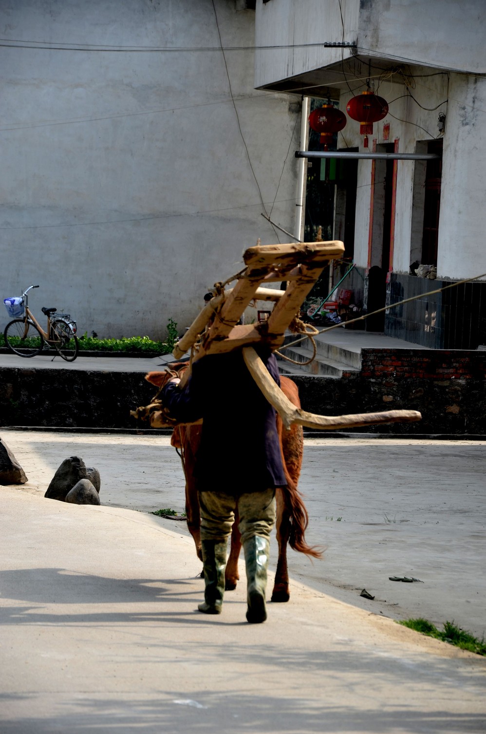 这段时间,正是育秧的时节,大叔扛着犁耙吆着牛,正准备下田 去做秧田呢