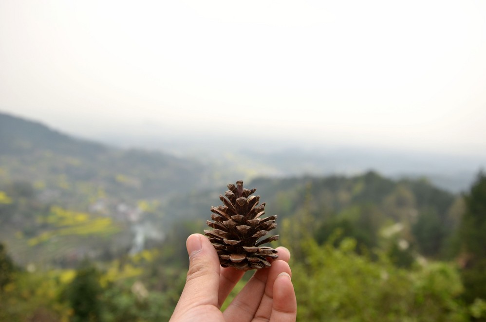 捡了个小松果,坐在这休息之余,顺带给它来个特写
