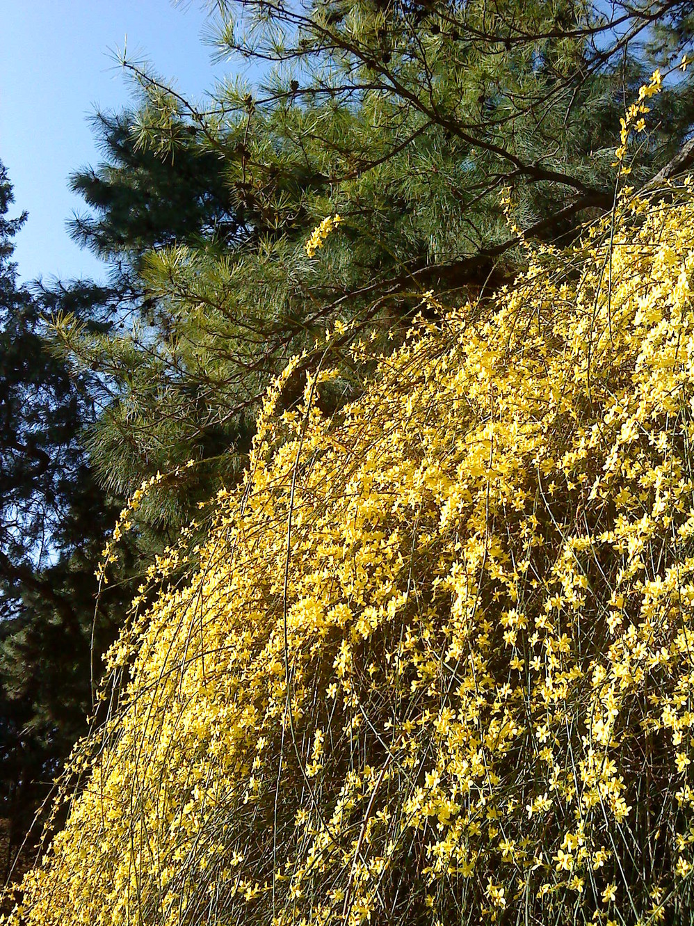 (这里的迎春花,比起小区里开的旺多了,到底是风水好啊,一个欧巴桑在那里拍了半天,让我好等)