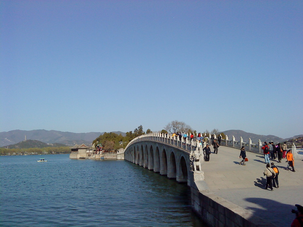 等到了东门,已经游人如织,我逆着往常的路线,从文昌阁沿着湖边走,吹着温煦的春风,听着船上娘们嘎嘎的笑声,虽然照片拍得少,但是间隔坐下歇息,看着对岸的西山,倒也有几分惬意。十七孔桥那里,没有清早的那种静谧和节律,天上飞着风筝,水里过着龙舟,着实是忙碌的尘世,我这种手机党,是没法拍到什么像样的照片的,就算那些大炮筒子,也未见得能拍到什么,别看人在那晃来晃去的,咔咔,在这里先酸一下。