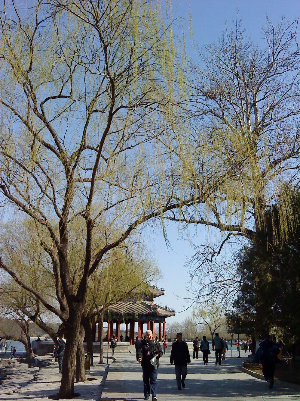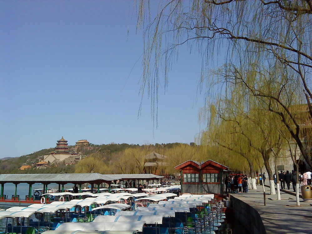 今年的春天,来得格外的迟,都四月初了,才刚觉着绿色上了枝头。今天是清明假日最后一天,怎么也要去颐和园瞧瞧。