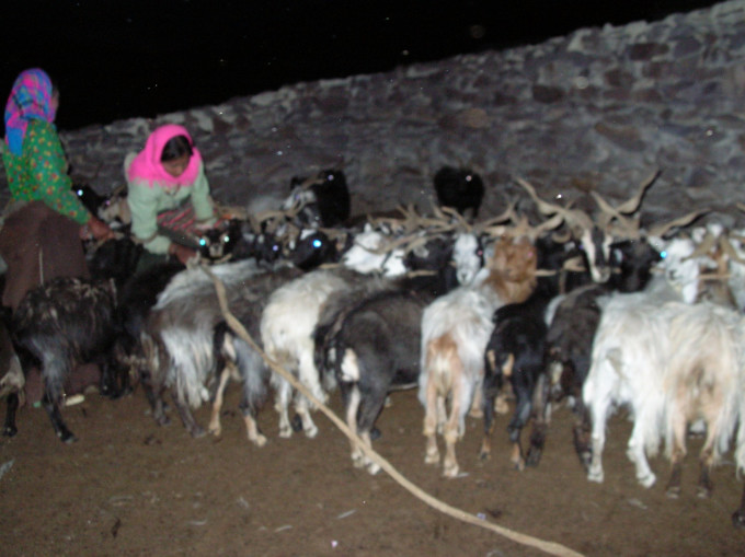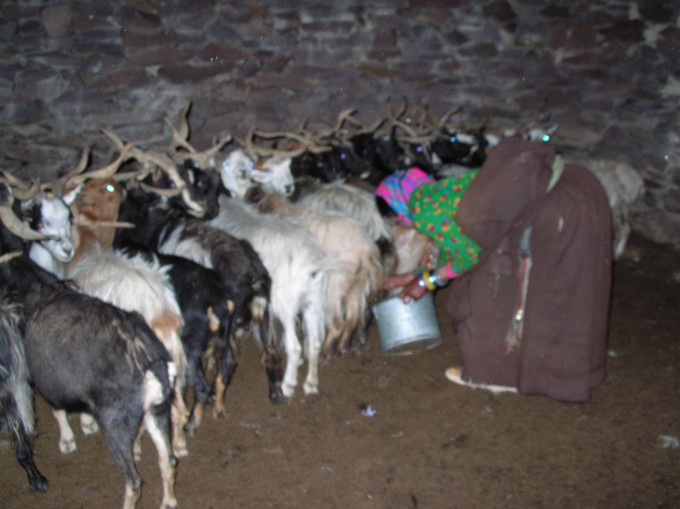 把羊用绳子揽起来,便于挤奶。