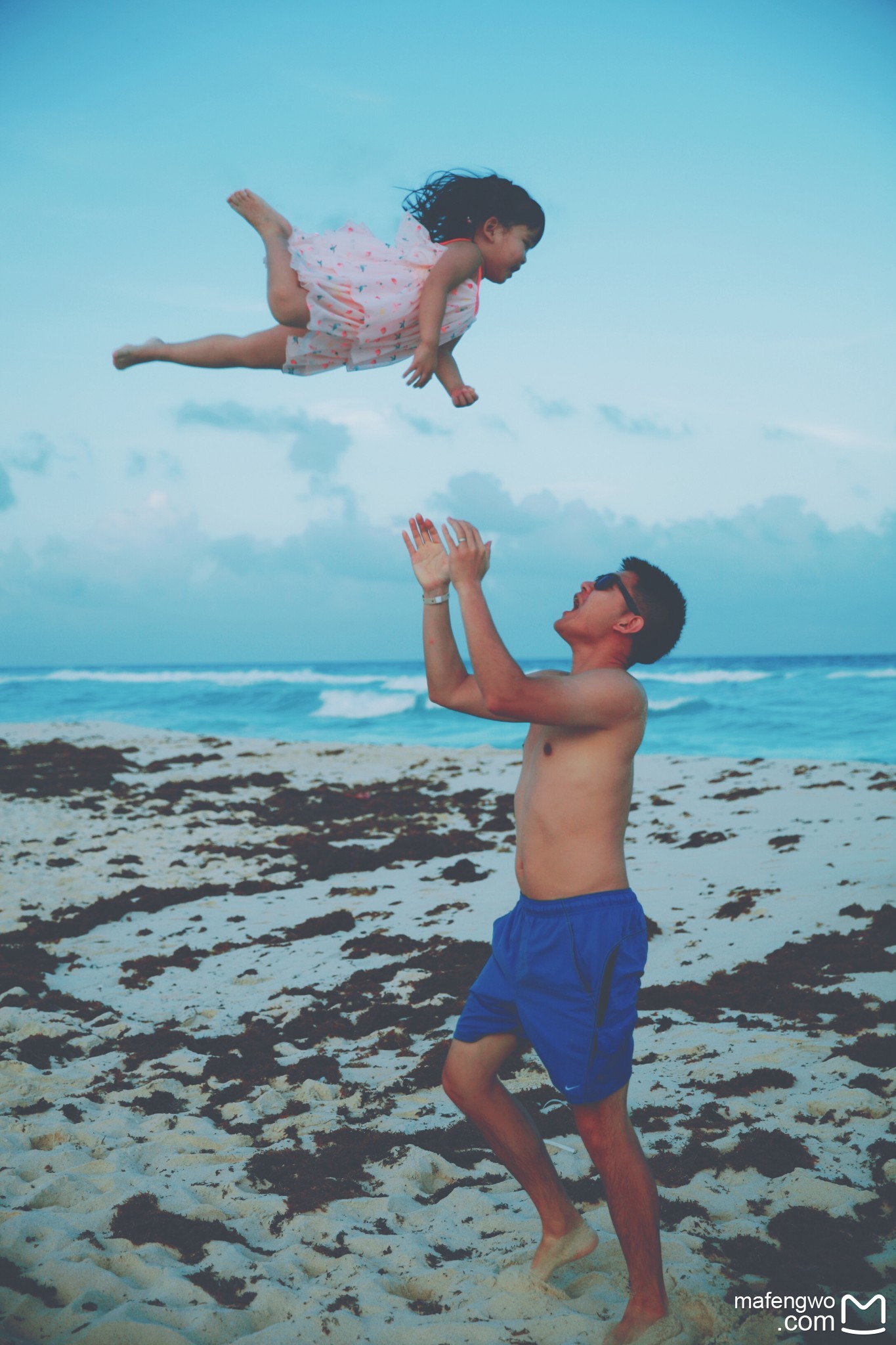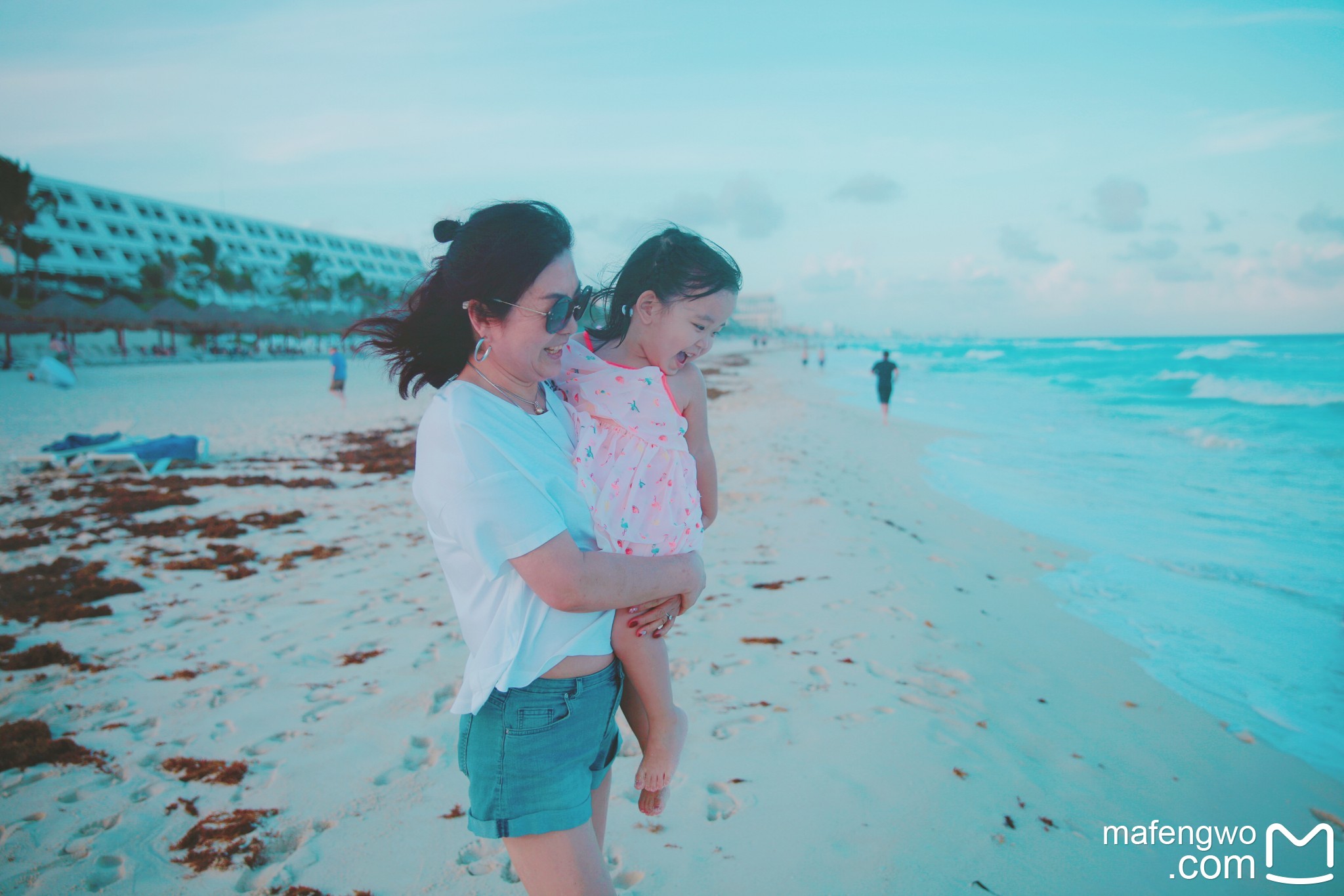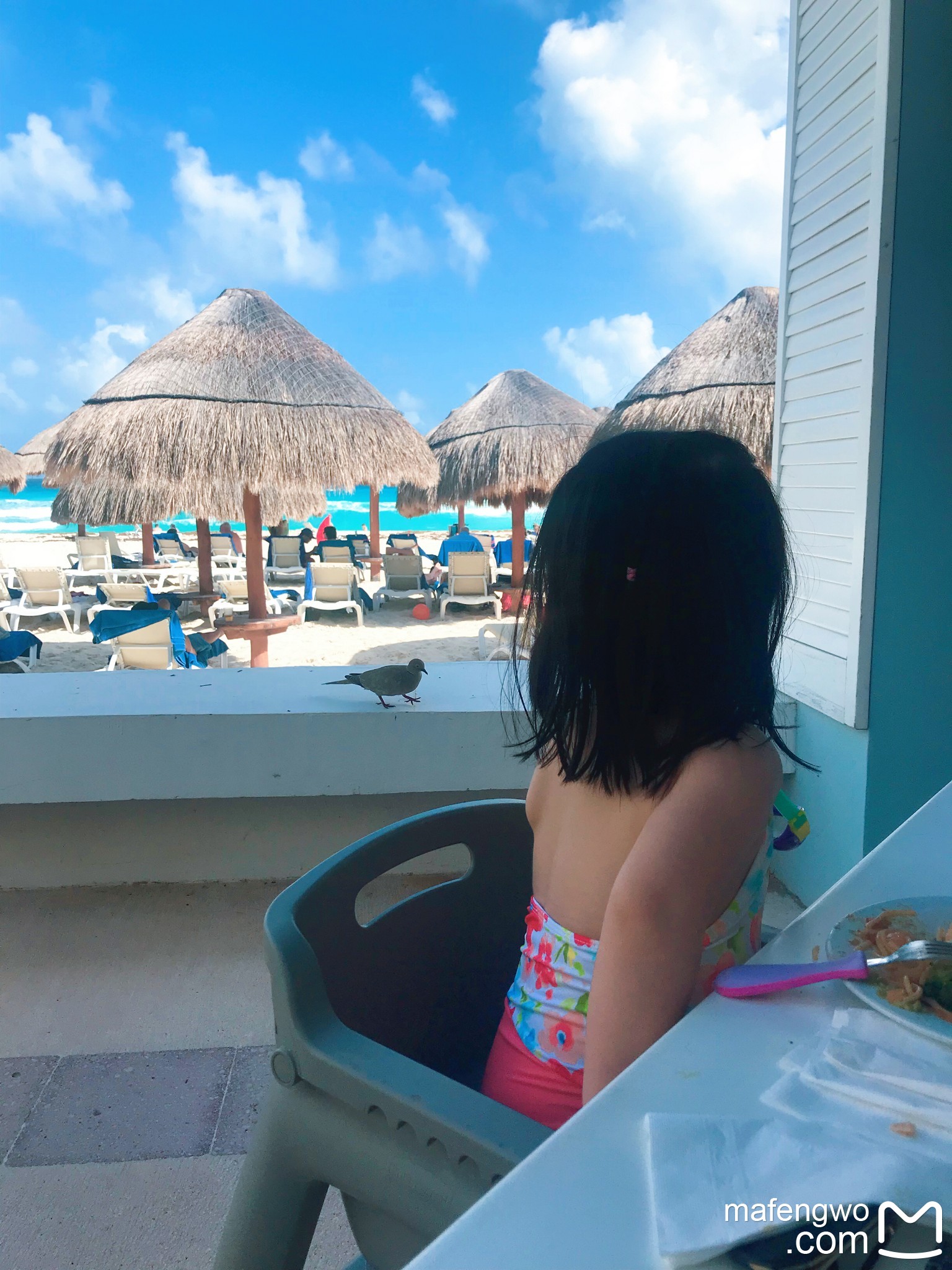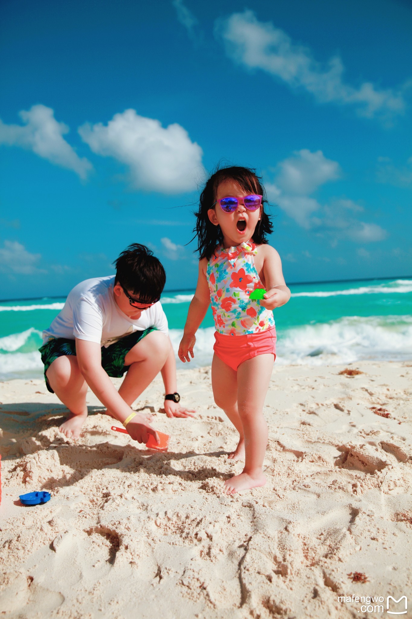 后两天住的是Grand Fiesta Americana Coral Beach Cancun,星级上要比上一家高一些,海滩更亲子一些。躺椅离海水没有那么远。不用担心小朋友乱跑。在这个海滩看到很多人在拍写真。