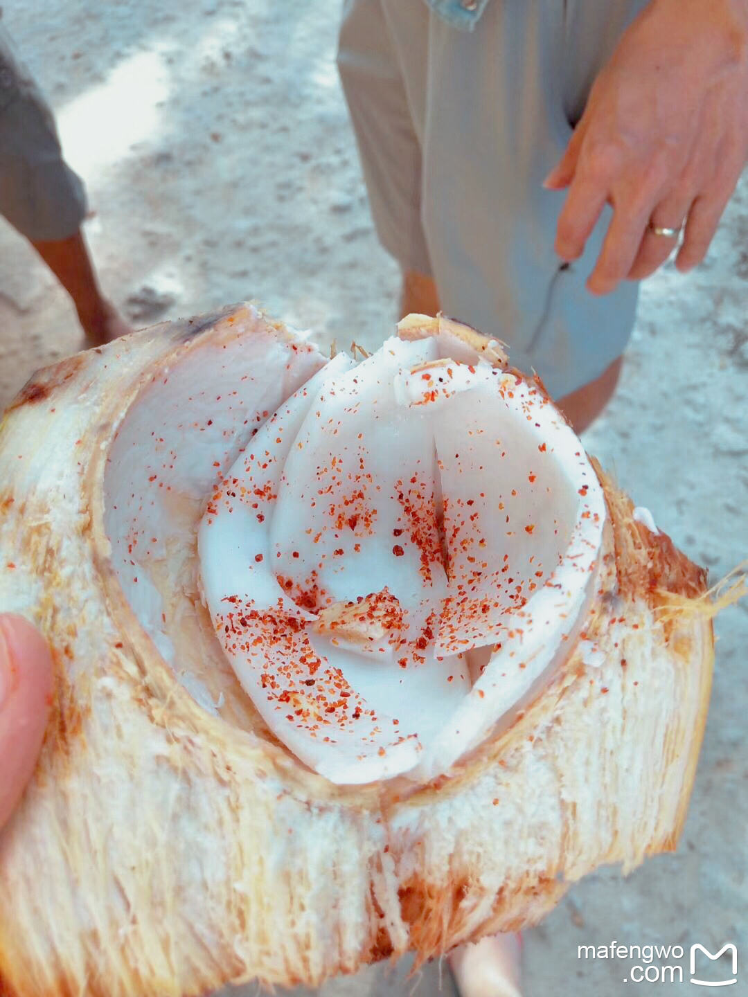 墨西哥是一个神奇的民族,在坎昆一定要吃的就是椰子肉撒辣椒面!味道酸酸的,很好吃。