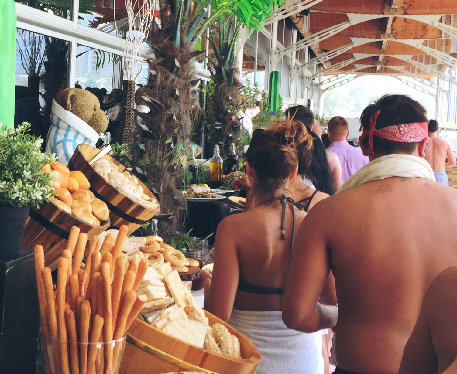 是一个带自助餐的泳池吧,