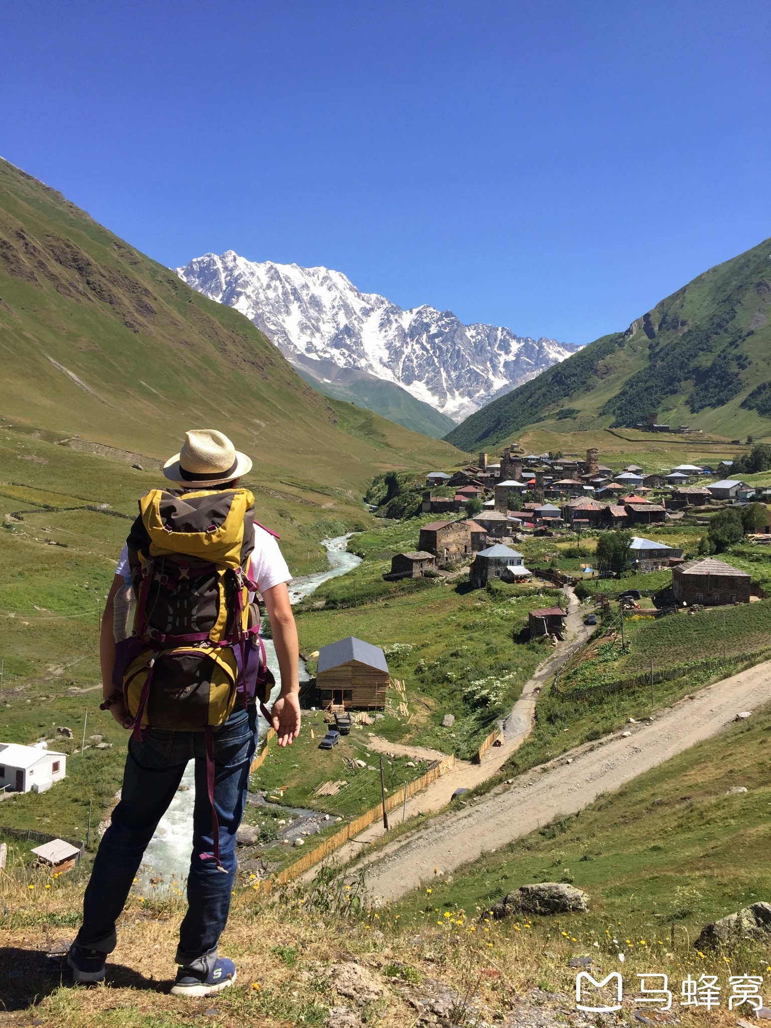 一个人徒步穿行在高加索山