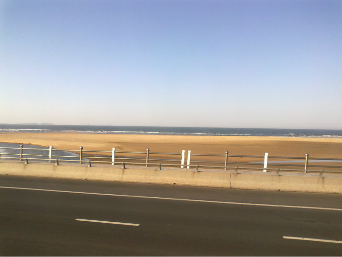 烟台到威海32元 公路大部分沿海而建 虽然有些睡意 但还是欣赏了一下这难得的公路美景