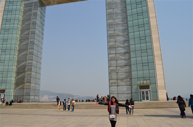 沿着海边逛了好一会 在这不知道叫什么建筑物的地方留完影就要前往青岛空中餐厅 在上边边欣赏海景边吃饭一定很爽吧