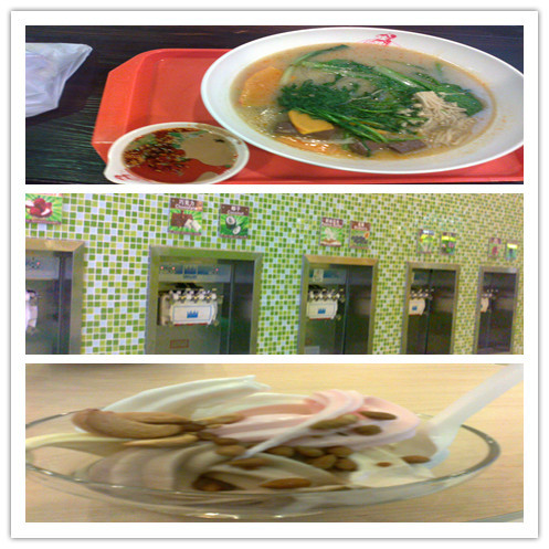 下面是自助冰淇凌 本来以为是交了钱随便吃 其实是你要什么口味的自己打 最后称重算钱 好好玩的 嘿嘿