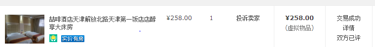 飞猪预定的天津第一饭店 喆啡酒店 2天总计258*2 大床房