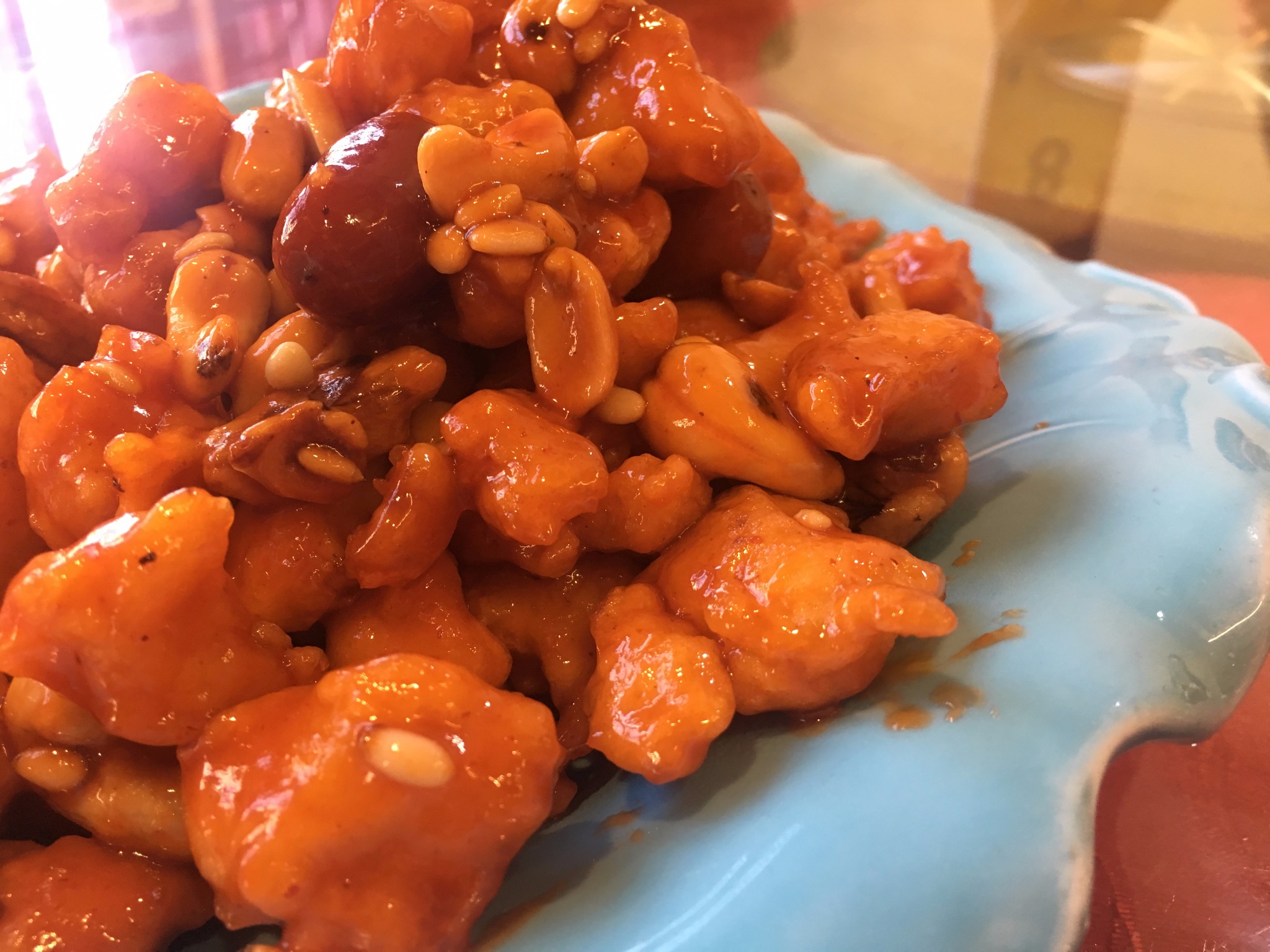 #五果脆皮鸡# 36Y 脆皮鸡一看就瓜总点的 总是有些不伦不类不知道哪个菜系的那种菜 五果 五种干果类的 大枣 花生 腰果 核桃 还有个好像是松子 鸡肉外皮挺脆的 里面也还很嫩 偏甜口的 味道中规中矩