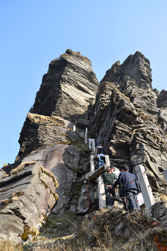 蘑菇石很险,有些阶梯是呈90度,必须手脚并用方能上行