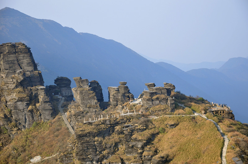 梵净山,位于贵州省铜仁市,得名于“梵天净土”,梵净山一直被人所提及的除了是著名的佛教圣地外,就是它号称8000级阶梯的万里云梯,一直都想找个时间去征服它,利用清明假期,我们踏上了前往铜仁的列车,一起去离开喧嚣的城市,去聆听野花与蝴蝶的对吟。