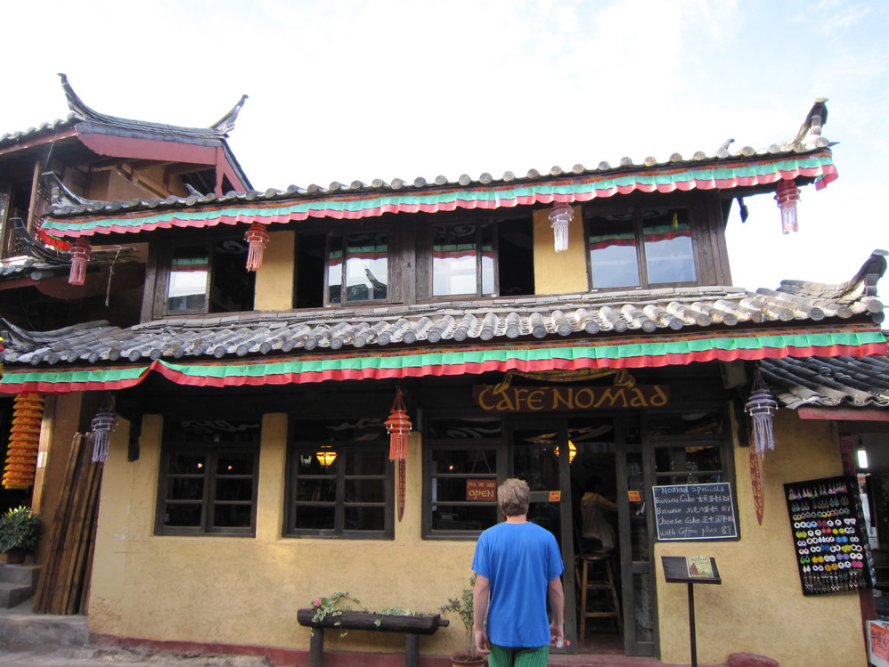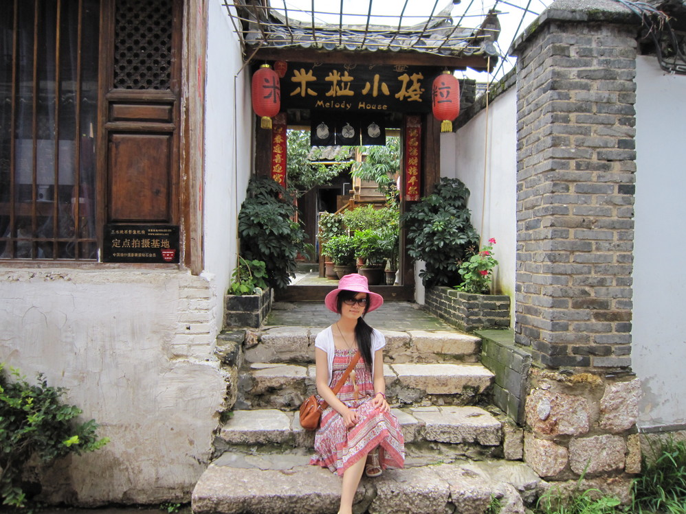 悠闲地漫步在束河古镇蜿蜒的小街上