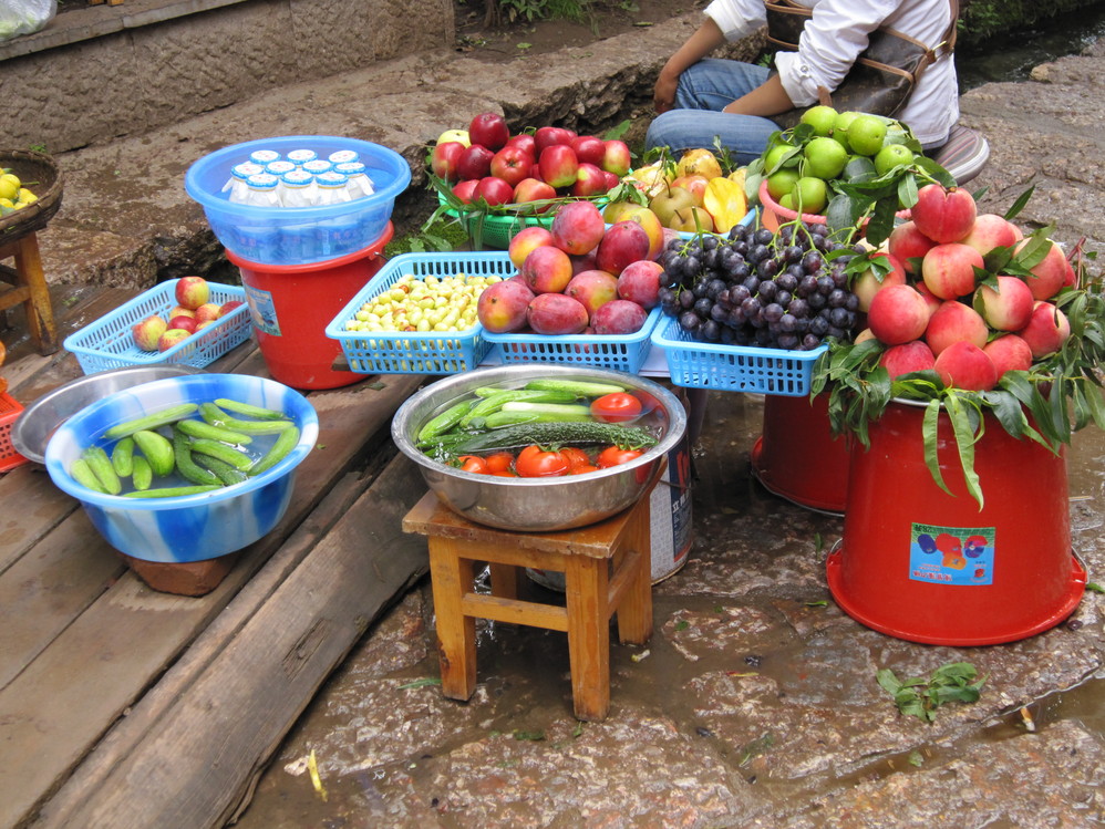 路边很多卖新鲜水果的农民