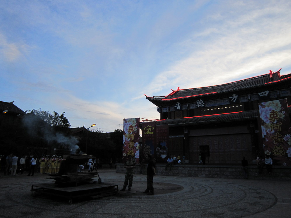 夜幕降临束河古镇的篝火晚会