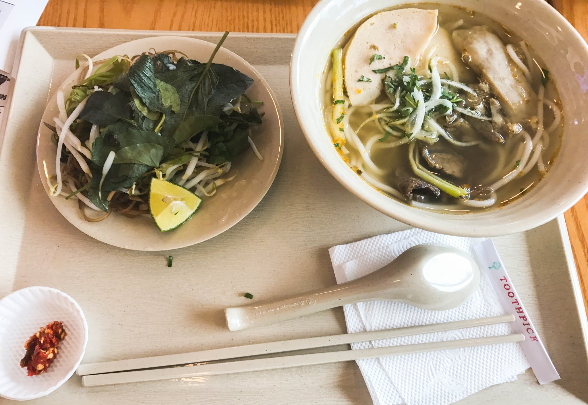 在胡志明市中心的高档商店钻石广场里,我们吃到了在越南第一碗pho。味道普普通通。