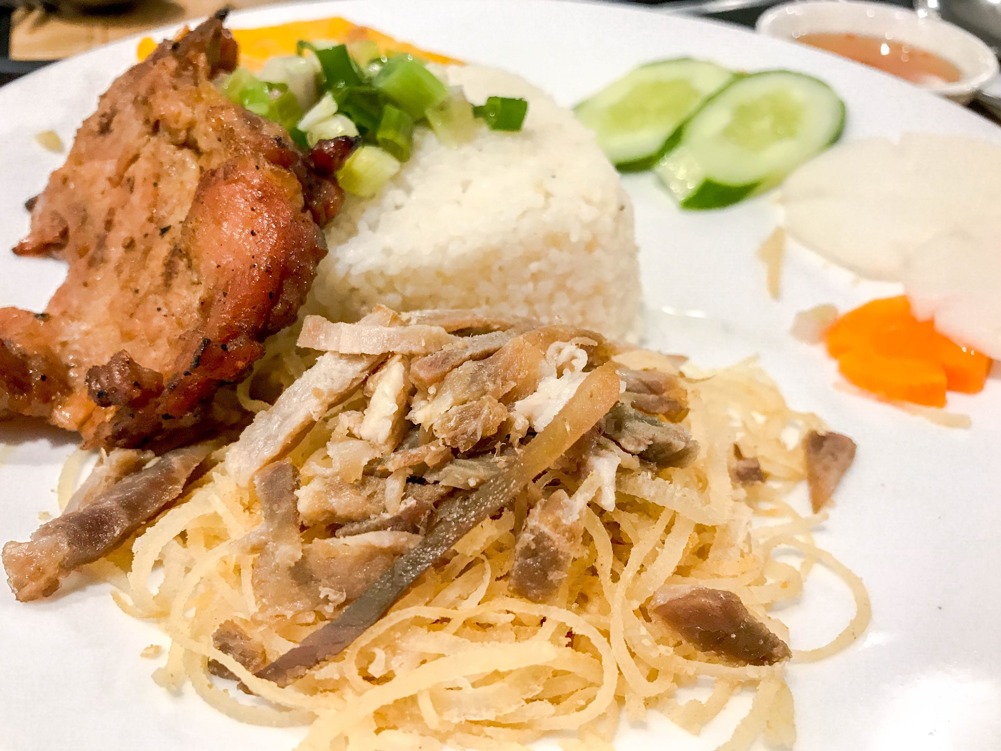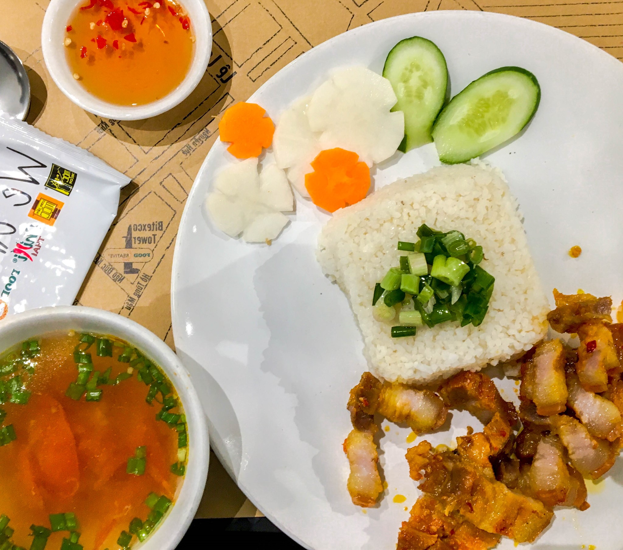以越南独有的【碎米饭】为招牌菜的一家餐馆。餐厅氛围很好,装修精致,当天除了我们两人以外几乎全是当地人。我们点了两个套餐,猪肉炸得酥脆,油汪汪的但是不腻,鸡排味道没有很突出但是也不难吃。配菜都是一种脆脆的猪皮,是从来没吃过的味道,有点奇怪,但值得尝试!
