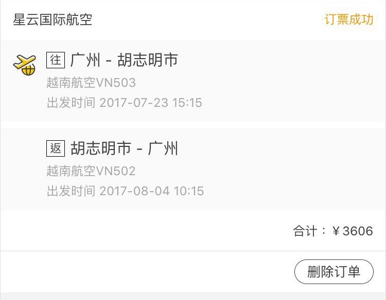 是在出发前两个月订的,没有选择廉航是考虑到不希望旅途太劳累,本来赶到广州一起出发就多了一段路程,半夜到达胡志明市也给接机的朋友增添了麻烦。所以选择了不是什么奇怪的时间,也没有行李限制,这个价格对我们来说也算满意了。下面的价格是两个人的。