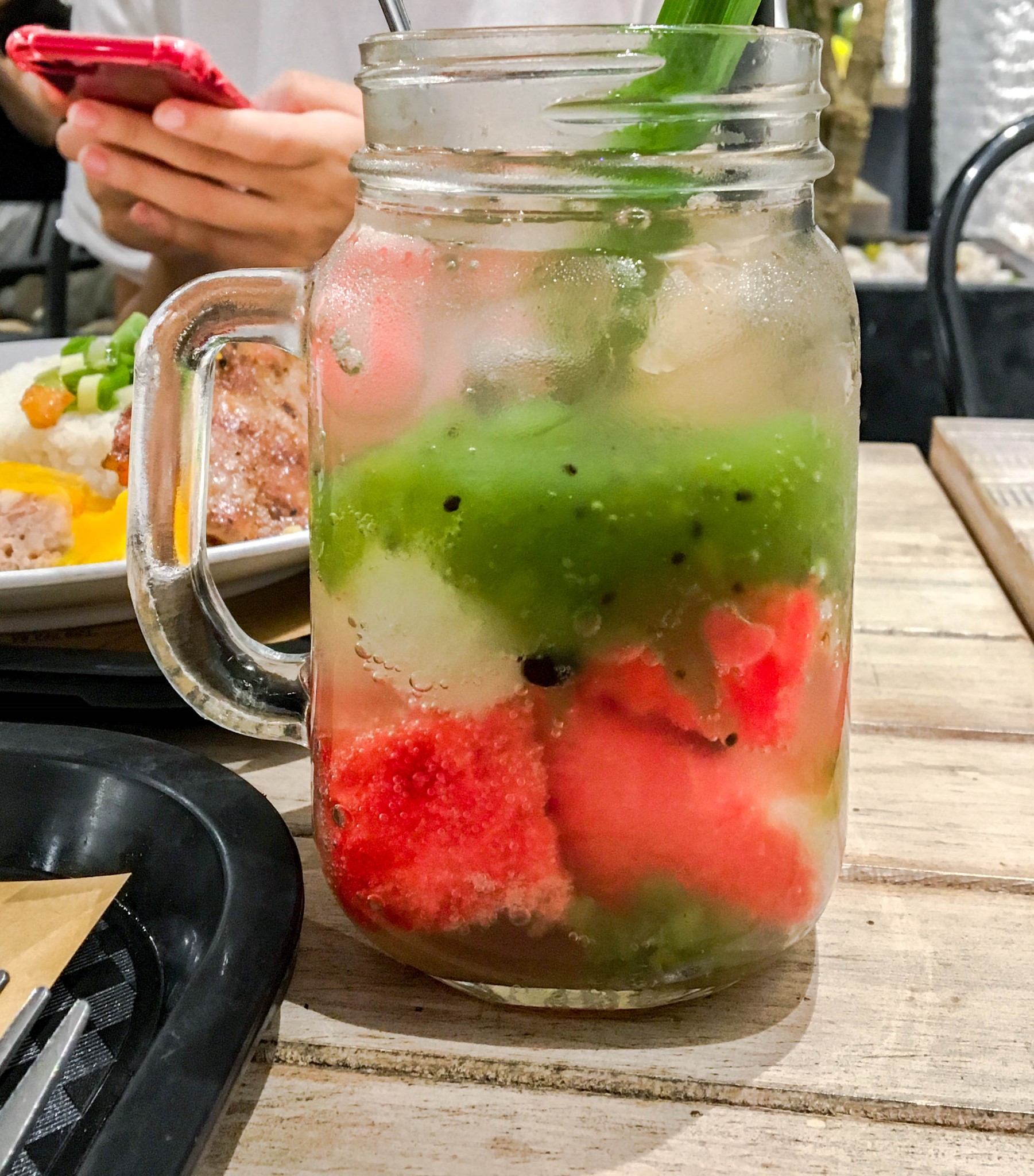 店内的水果汽水很好喝,水果冰冰凉凉的,汽水甜滋滋冒着泡,很有夏天的味道~
