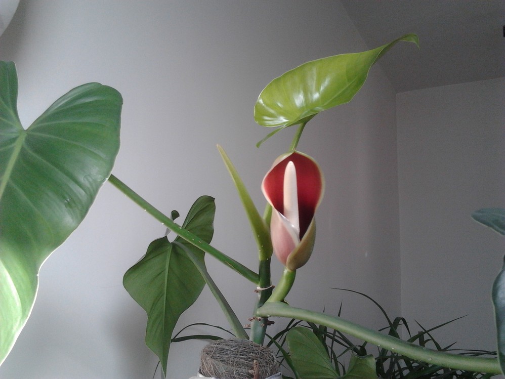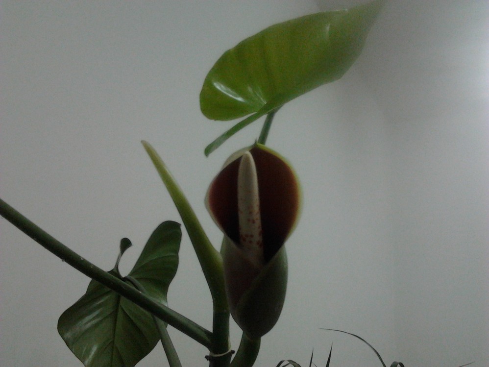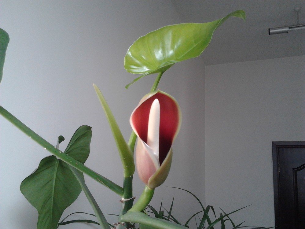 绿萝居然会开花。哈哈,太幸运了。。。的确,绿萝很少开花的,在网上搜了下,这个开花很难得的,而且花期很短,两天时间不到就又合上了,这可是事实情况,不过她散发出来的清香扑鼻,那天晚上闻到花香很惊讶,整个屋子都是花香。第二天早上整个办公室,整个楼道都是清香。不过到晚上就又合起来了。很可惜。不过能见到绿萝开花已经很幸运了。和大家分享下!!照片是2月初拍的,现在才有时间上传。(石家庄)