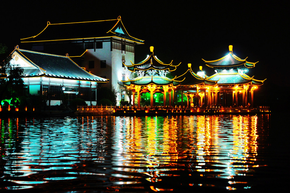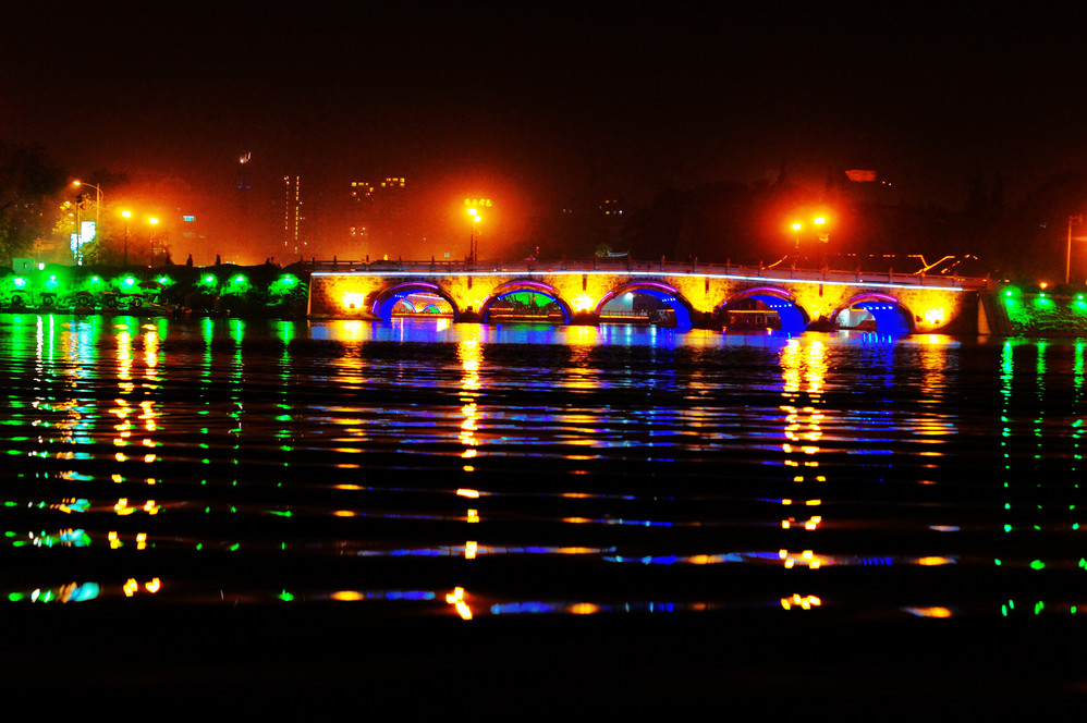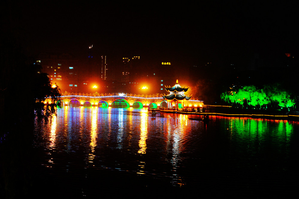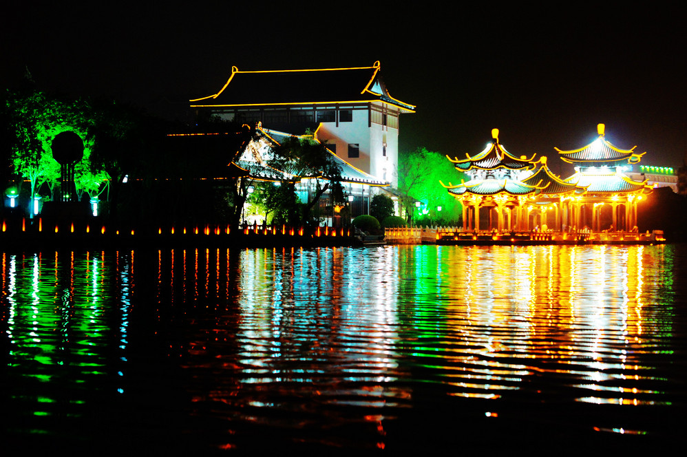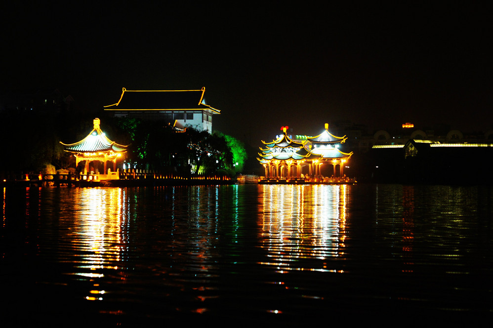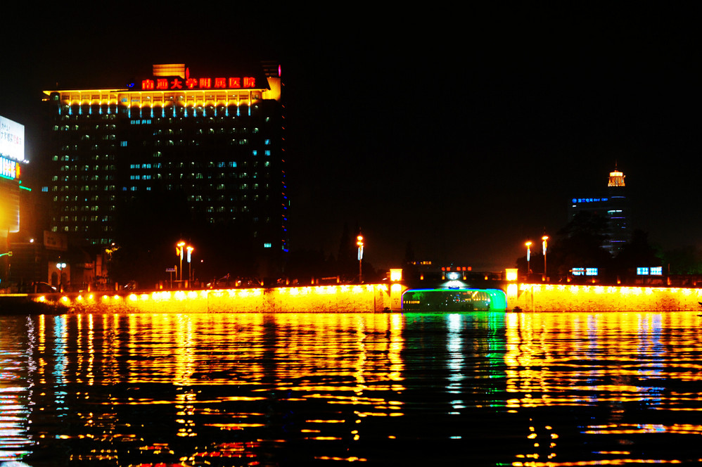 的濠河夜景非常不错,附上夜景中的濠河照片。