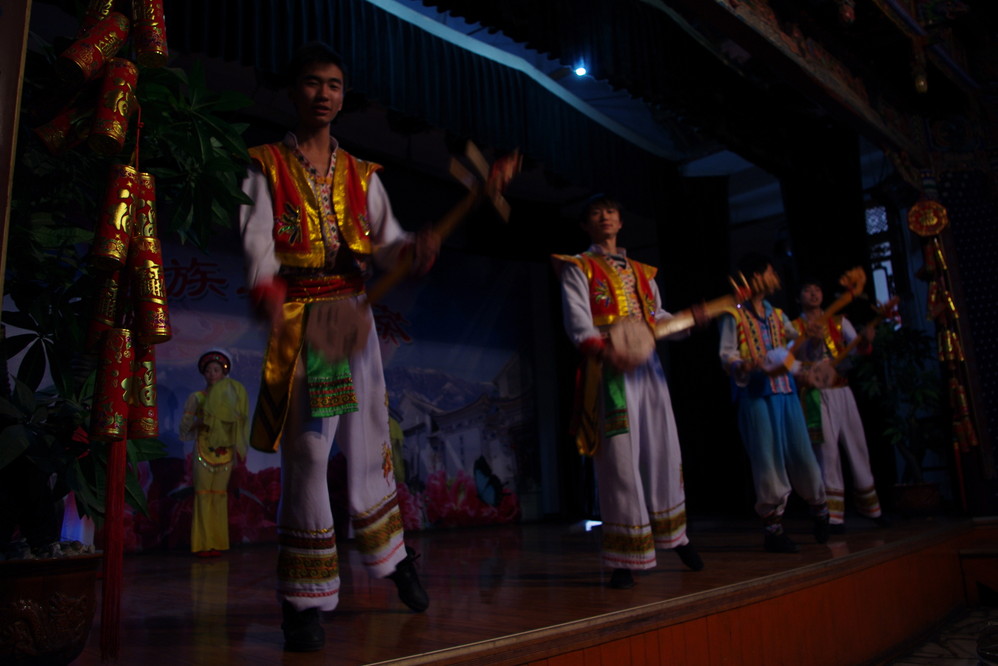 白族歌舞表演,尤其记得其中一段舞《掐新娘》,很有趣。