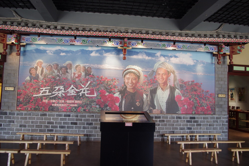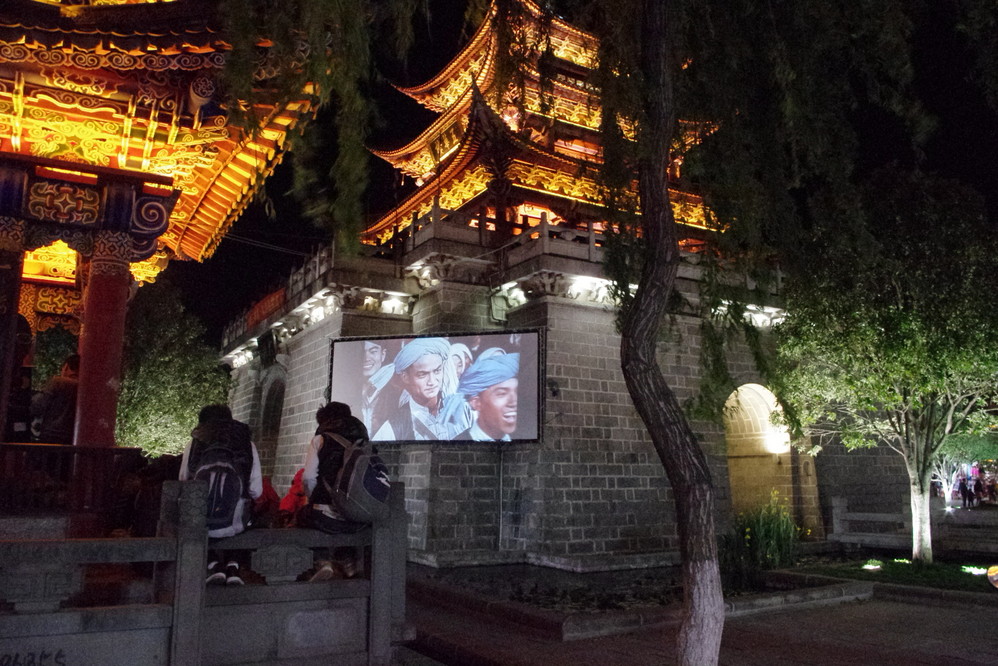 晚上的古城里,总是会用传统的放映方式给大家放映《五朵金花》,,如果你不赶时间,如果你追忆童年,可以坐在石桥,静静感受那份情怀。