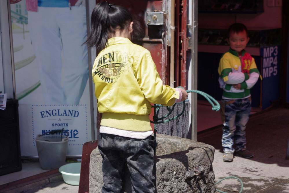 古城里用水都还是采用这种古老的方式,在旁边看着,感染了他们的快乐。
