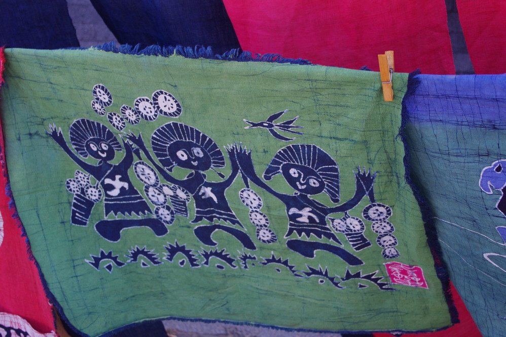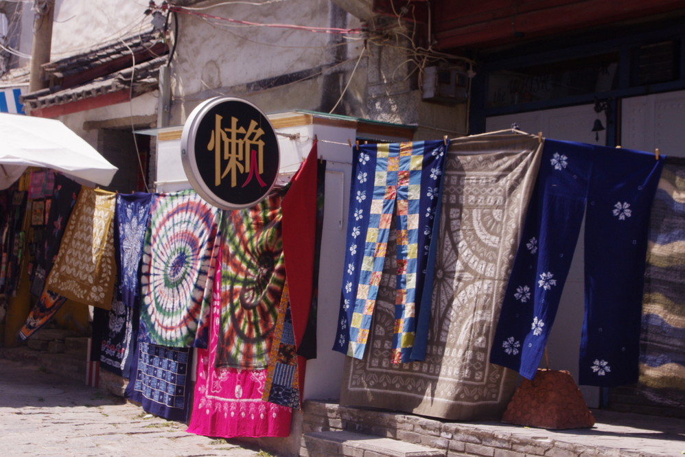 大理 扎染,,悠闲地在大太阳底下晾着,人呢就懒着。