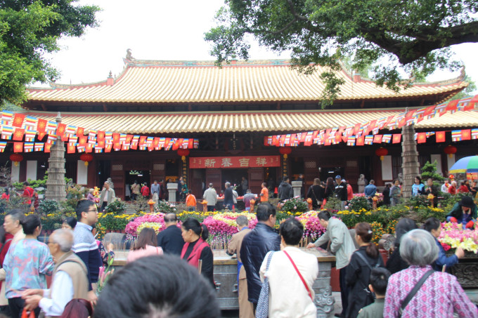 光孝寺大雄宝殿。光孝寺大雄宝殿始建于东晋时期,现在的建筑建于清代初年。殿堂高大宽敞,气势雄伟。