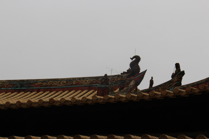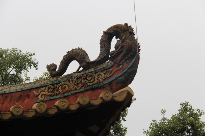 光孝寺大雄宝殿的屋顶有精美的雕刻装饰。