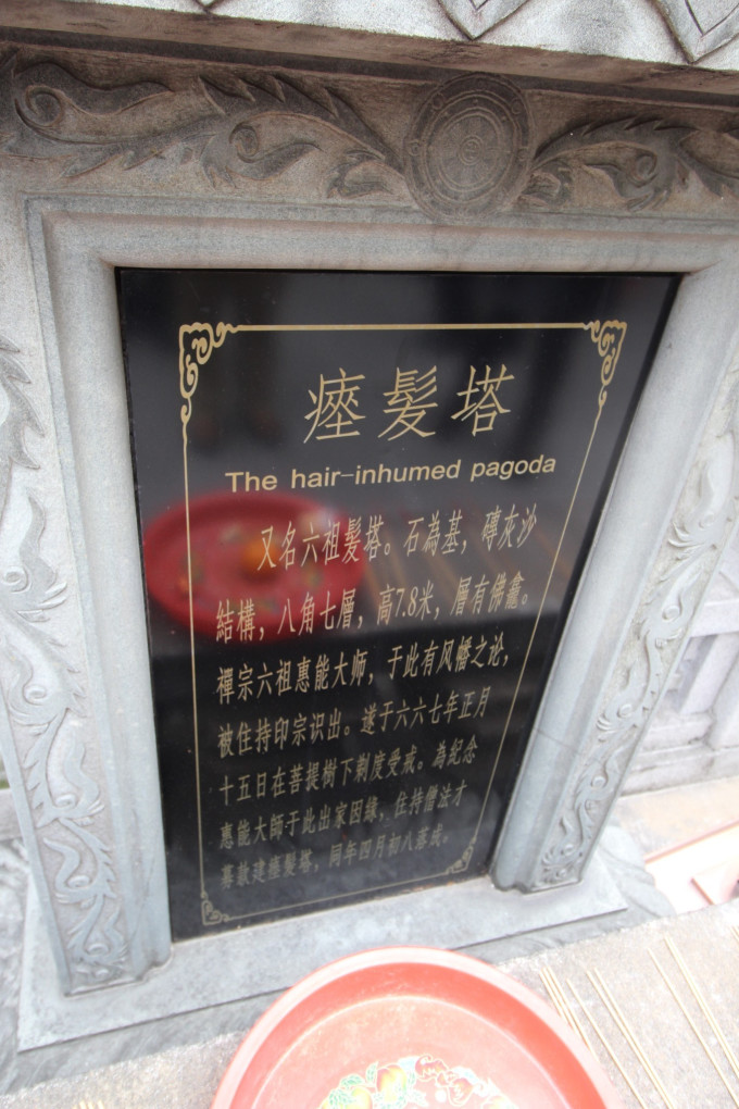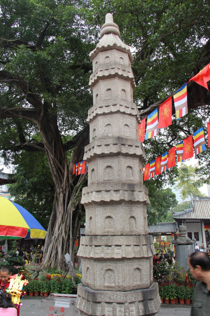 建于唐代,高7.8米,呈八角形,七层,每层有八个神龛。唐高宗仪凤元年(676),六祖慧能在菩提树下剃发为僧后,当时的住持法师印宗把慧能的头发埋在这里。当年六祖慧能正是在光孝寺以“风幡论辩”,成为禅宗南派的创始人。后唐代人建塔以资纪念。