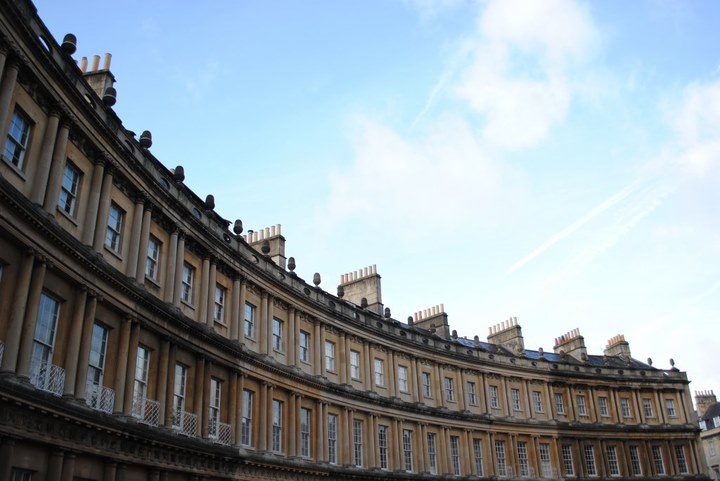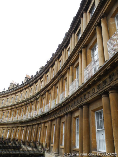 皇家新月搂是1774年完工的連續住宅。也就是我們現在的聯排別墅。這裡可是古時候換季時上流社會來Bath度假的別墅。一共有30間別墅排成了新月的形狀。皇家新月1號樓現在已經成為了博物館,進去可以一窺當年貴族奢華的生活哦~