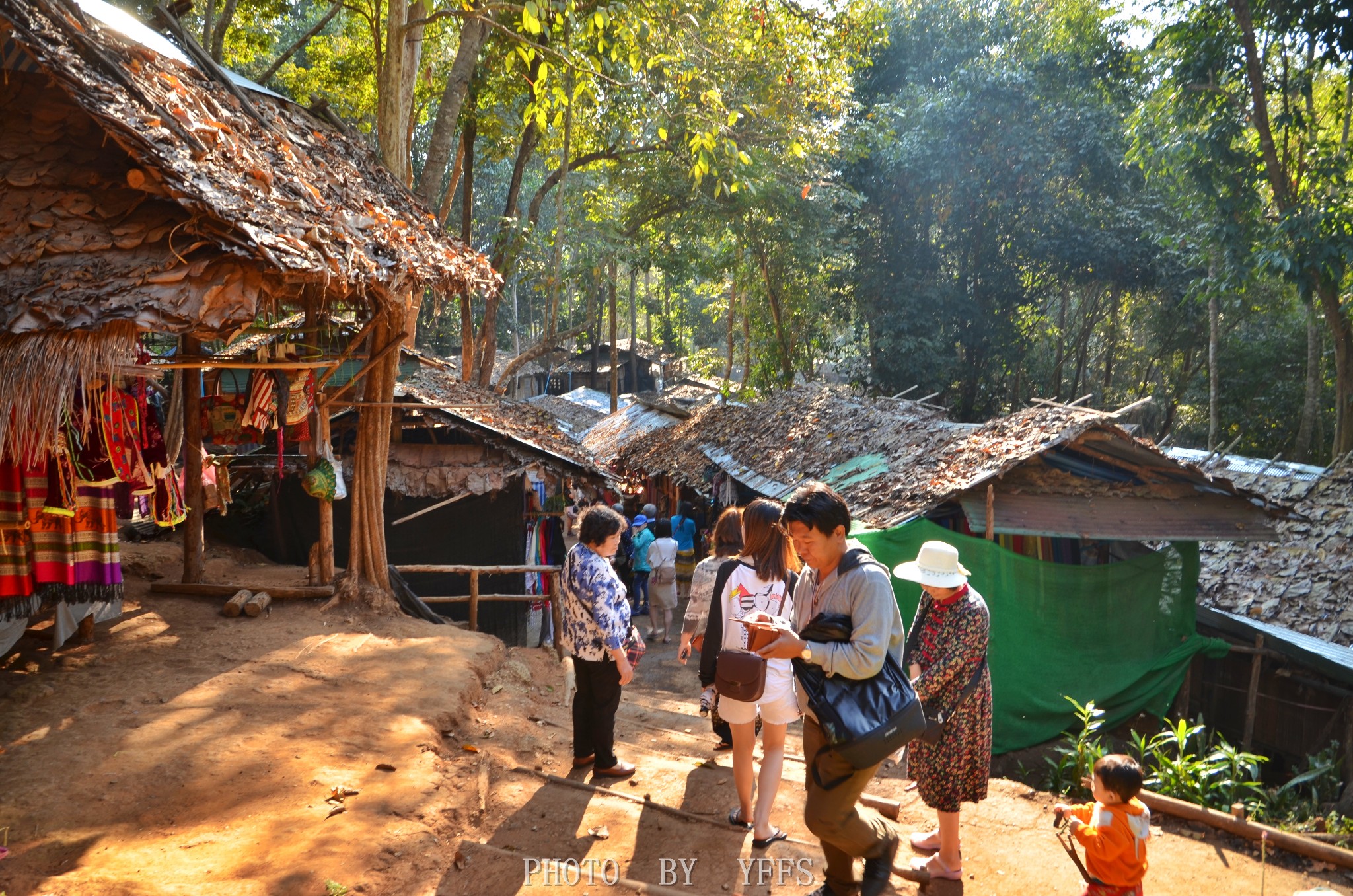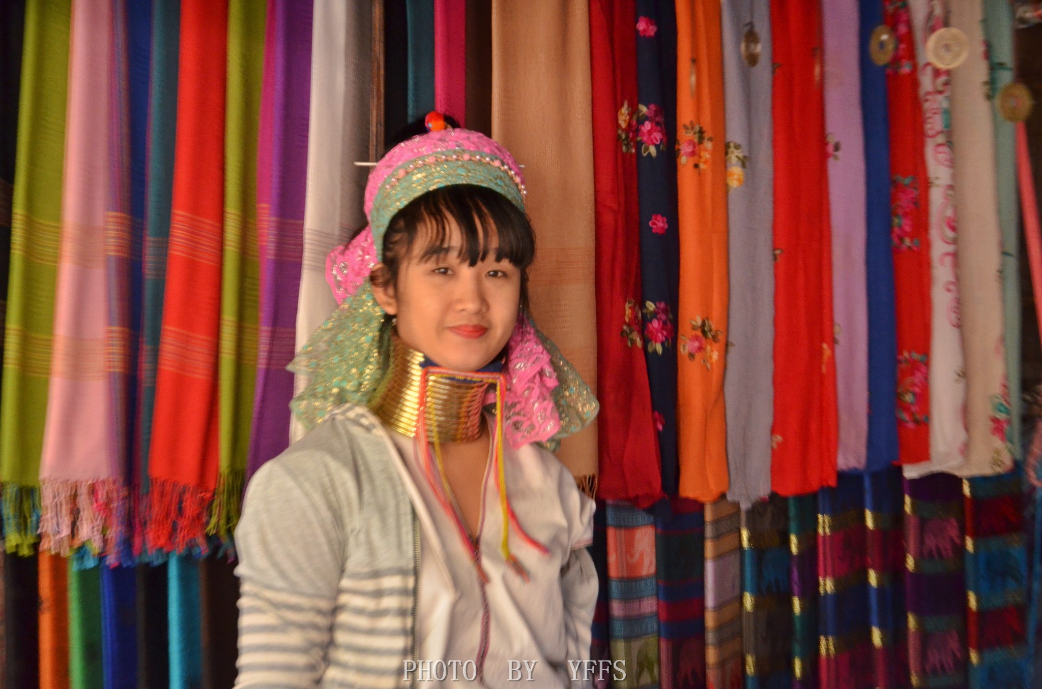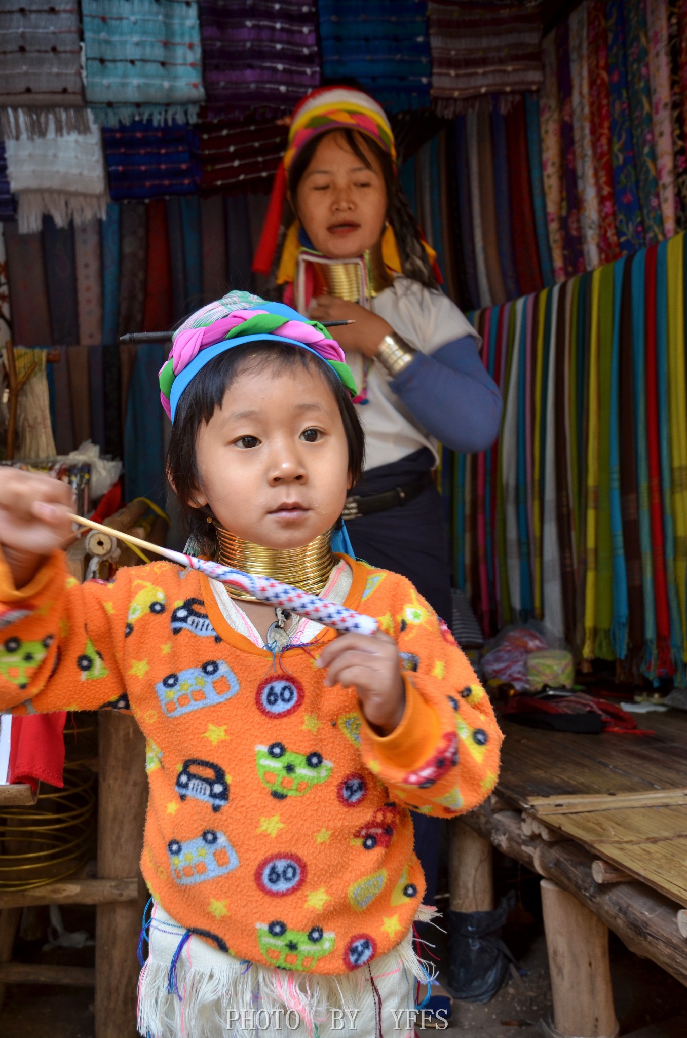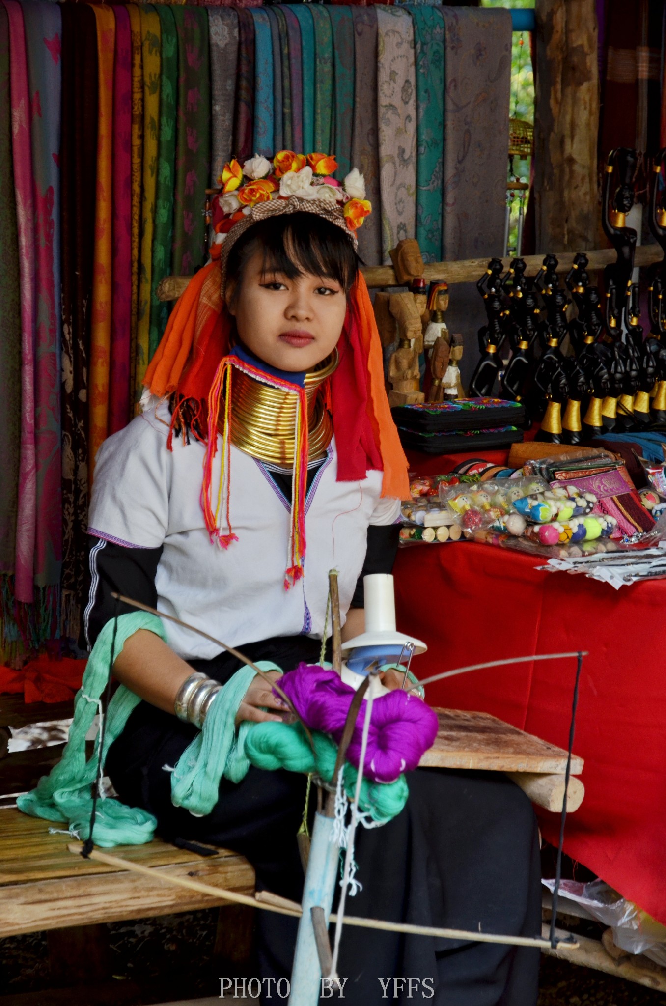 在泰国北部,有一个特殊的村落——长颈村,这个村落里的女子脖子异乎寻常的长,因此当地人习惯将他们称为长颈族人。泰北长颈族人属非法移民(本是缅甸过来的民族,在泰国他们成为难民),他们生活在泰国政府划定的这小片土地中。因为没有国籍,所以不允许随意出行,村中的男人在得到政府的许可后可以外出打工,女人和小孩则被留在村里。女人们善于制作各种手工艺品,并作为纪念品向往来的游客兜售,她们完全靠旅游业来生存。导游在作介绍