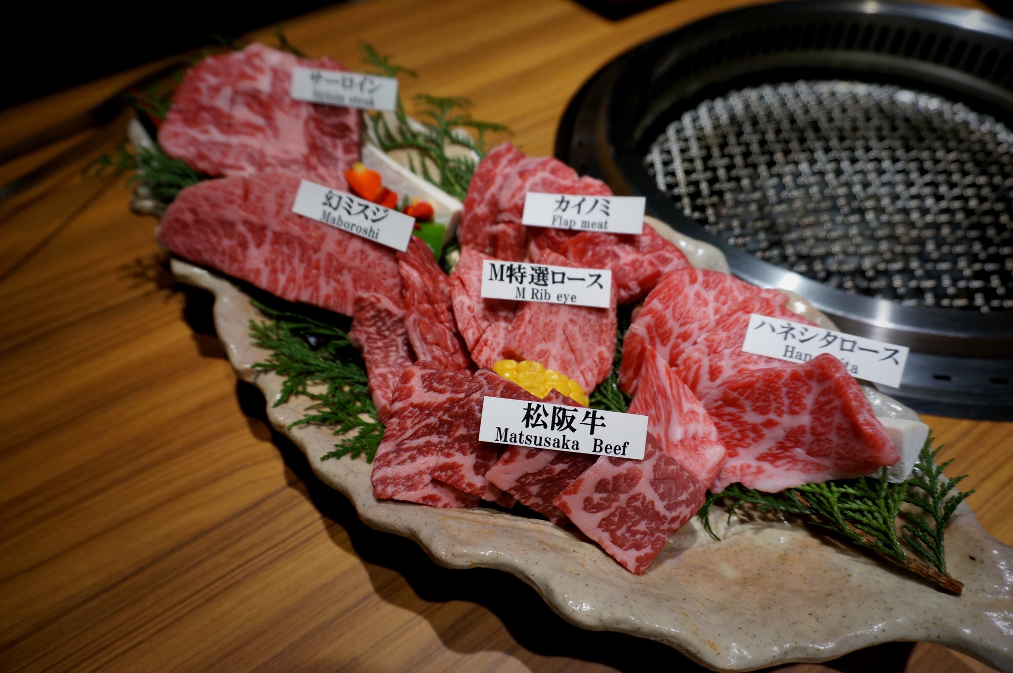 日本三大和牛是指关西地区出产的松阪牛、神户牛和近江牛。我们晚餐选择在了这家比较出名的吃松阪牛的烤肉店:Mの焼肉(道頓堀店)。