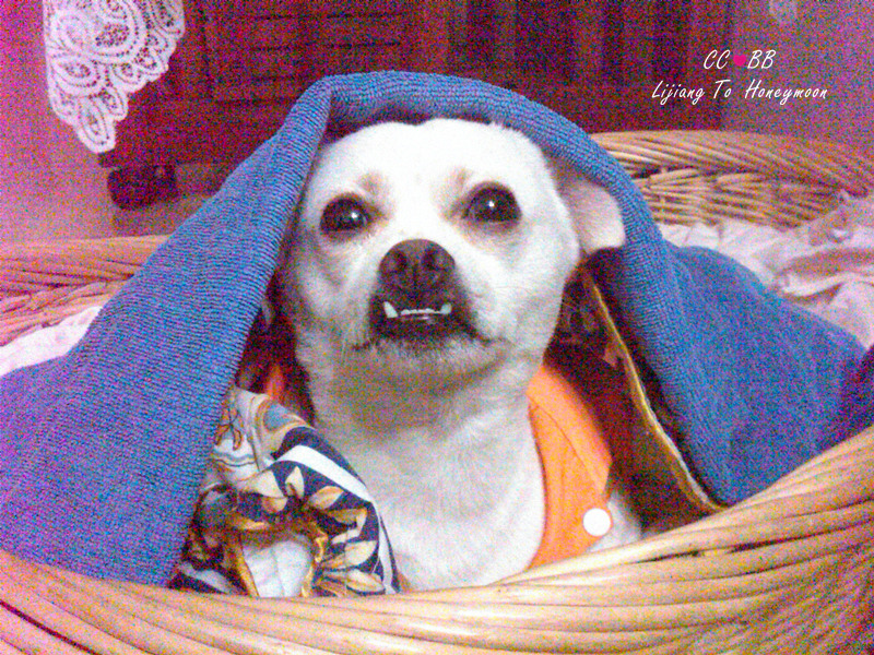 小家伙被吵醒了,还没有弄明白咋回事……迷迷糊糊的!不好意思啦!我们要外出一段时间哦!你在家要乖乖的哦!回来给你带小礼物哈!