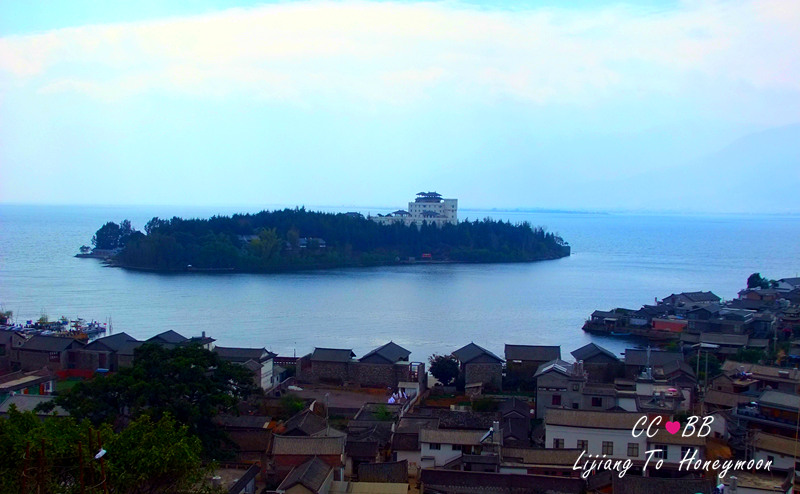 左边下去后又有一个路口,左转是去南邵岛(停车场),右边去双廊 镇上(也可以通往玉几阁),我们走了左拐,便是停车场,有一个售票处,是坐船去南邵岛的,右侧则是图片的玉几岛沿海边咯~可以走过去!这里不收费!