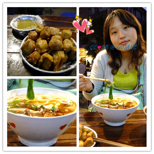 我们在文化巷最深处找了一家小吃店,点了一份油豆腐(有特色,要尝尝!)一份过桥米线,一碗杂酱米线,好像一共吃了¥20多!