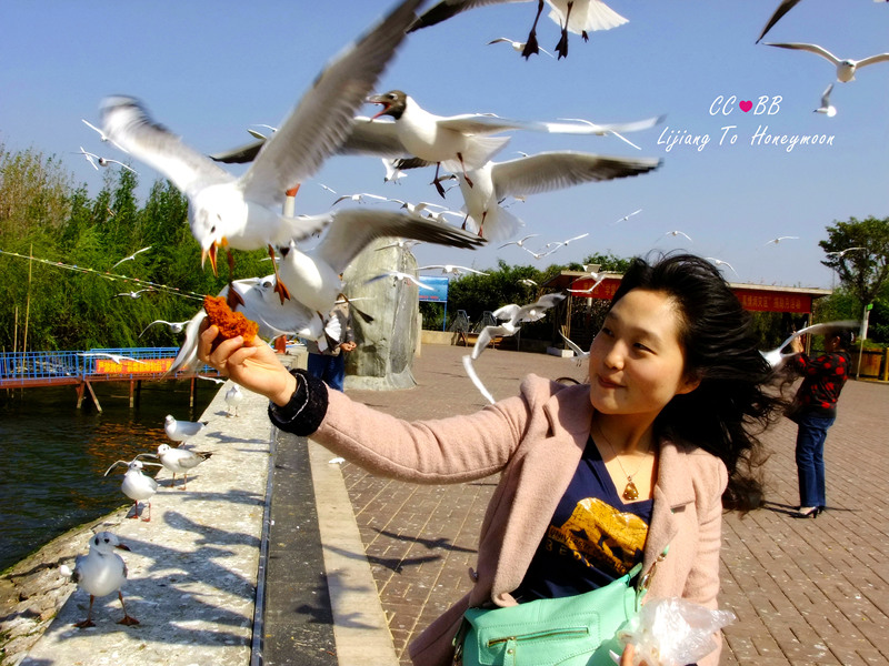 海埂大坝,沿途有1、2公里吧!大坝对面就是西山!在这里每天都有许多市民及游客到这里喂海鸥,大坝上有许多摊点卖鸥粮的,2.5元一包均价,难得去一次就多买几包吧!也算是做一次慈善啊!这些鸥粮都是政府部门监管的,政府部门也会在海鸥过冬的期间组织市民前往昆明 湖,一起喂海鸥。因为鸥鸥再过一个月就要飞回西伯利亚了!他们能否吃饱,能否顺利回到它那遥远的故乡!这还真得大家的爱惜啊!也许很多海鸥饿着肚子就返程了,在路上或许就体力不支……如今咱们的地球环境日益遭到破坏,这种自然景象将会越来愈少,真心希望我们人类可以善待地球,善待家园……各位!要是还看到有海鸥在翱翔,请多喂点他们吃吧!