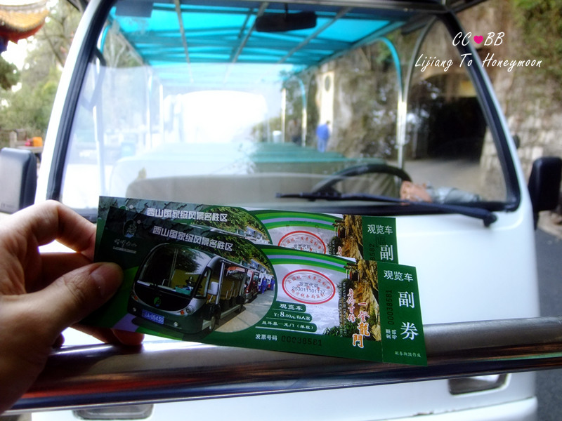 门票:¥40/人 (含龙门 景区)我掏出了早在网上团的“七彩云南 ”通票,嘿嘿……附上身份证,然后再买一张全票,两人进入顺利使用,验票人员会在通票上加盖一个纪念章哦!西山森林公园,北起碧鸡关,南达灰湾,由碧鸡山、华亭山、太华山 、太平山 、罗汉山等山峰组成,由北向南逶迤升高,最高峰海拔2507.5米,最高的罗汉山高出滇池水面约620多米。