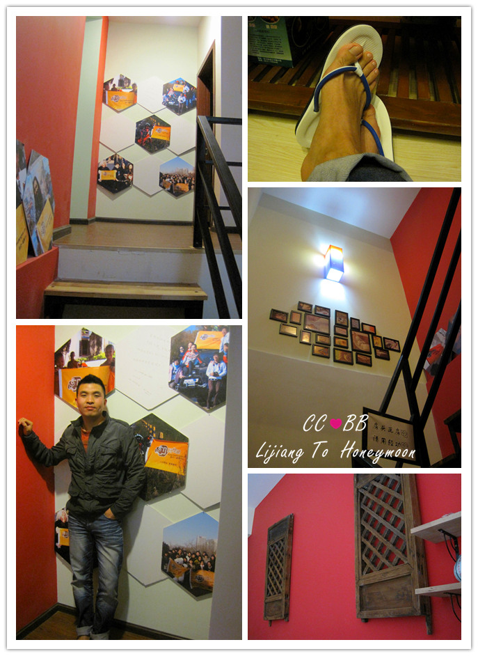 左边那位穿着大花裤,黑上衣……壮实的男人就是赵司令啦!昆明 舵主,乍眼看感觉像东北 人!其实不是……他可是地道的昆明 大理 人!进入客栈映入眼帘的就是温馨的空间,大红墙,时尚的装潢,蚂蜂窝的大柜子,还有一位美女老板娘-白小鱼!这两位的爱情故事可以说是奇迹般的偶遇啊!两位都是热爱生活,热爱旅行,终于自由的粉丝……在一次旅途上相遇,在一次旅途上相爱,在N此旅途上相伴……到永远!!