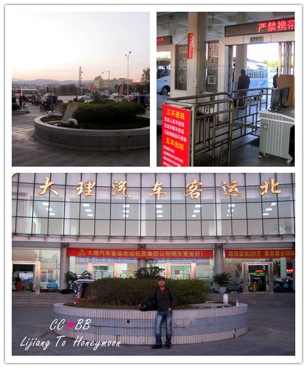 到了大理 站,这并不大!我们第一件事就是找8路公交去客运北站!出站口就是一个站前广场(公交总站),门口停了一些运营的私家车和公交车,在昏暗的晨光中,好不容易发现了8路公交车(1.5元/人),赶紧上前,同时也很多当地人清早赶车,也有几位背包客上车,很快车子开动了~,一路走一路就越上越多人……挤得不能再挤了!幸好我们在总站上的车!坐上位子了!这车感觉有点像校巴,都是赶上学的学生。此时,我才发现,这公交没有报站,但是在车头上方有一个电子显示屏都被人挡了,每到一站会显示站名。我们也不知道,到底在哪个站下?于是问了一下前后的当地阿姨!嗯嗯……非常亲切,她们都很配合,也很愿意的为您指路!还很热情的说:“到了那里我叫你们!”其实到了外地这种感觉真的好情切!不想在一些大城 市,问个路都难!就这样!我们就在这台挤了半个多小时“校巴公交”!终于到了大理 汽车客运北站(其实也是所称的下关 ),这个停靠站也叫“客运北站”下车后马路斜对面就是车站了!我们第一时间进入售票处,购买好了第一班8:30的车(下关 —》双廊 )票非常好买,每隔40分钟就有一趟,买好了票,时间还很早,我们又出了站口在旁边的小吃店,吃了一碗米线,(貌似这里的早餐都是米线喝稀饭!米线非常油腻,但是没别的选择了!)