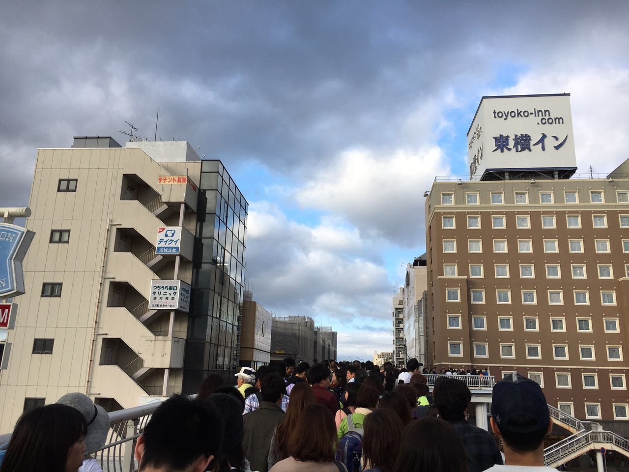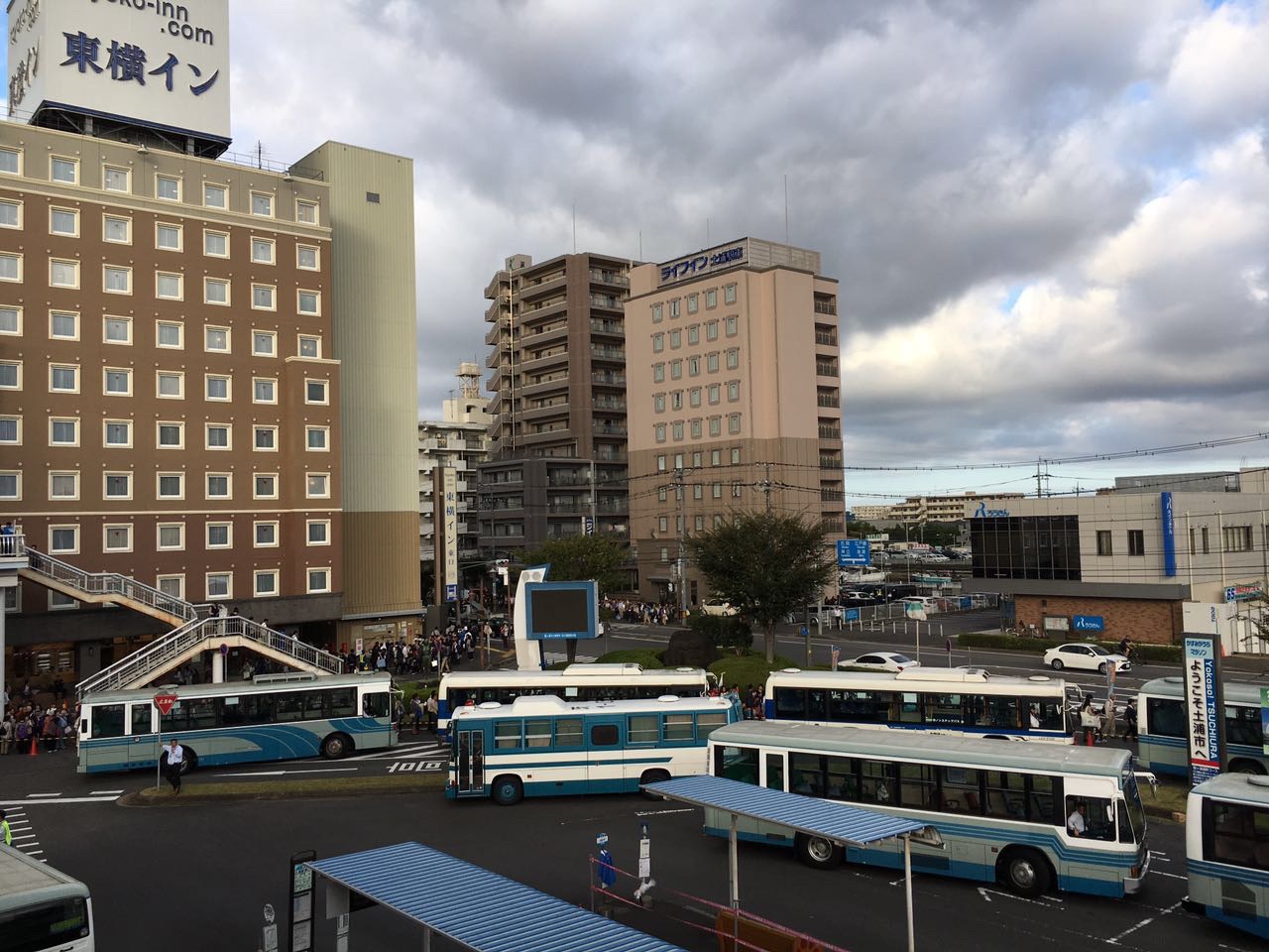 在茨城机场乘坐石岗线巴士在终点站JR石岗站下车换成JR在JR土浦站下车即可。至于接下来的路程嘛,只要跟着人流走就可以了。我们跟着井然有序的人流在JR站饶了一大圈,在车站背面临时搭建的烟火大会接送专车售票处买了往返车票(可以刷西瓜卡哦,而且很便宜)就继续排队等待源源不断循环接送的巴士了。顺带一起,原计划在车站找个行李寄存的箱子轻装上阵的,怎料提前2小时到了车站居然这么多人,仅有的几个寄存柜都满了,只能拖了一路的箱子去