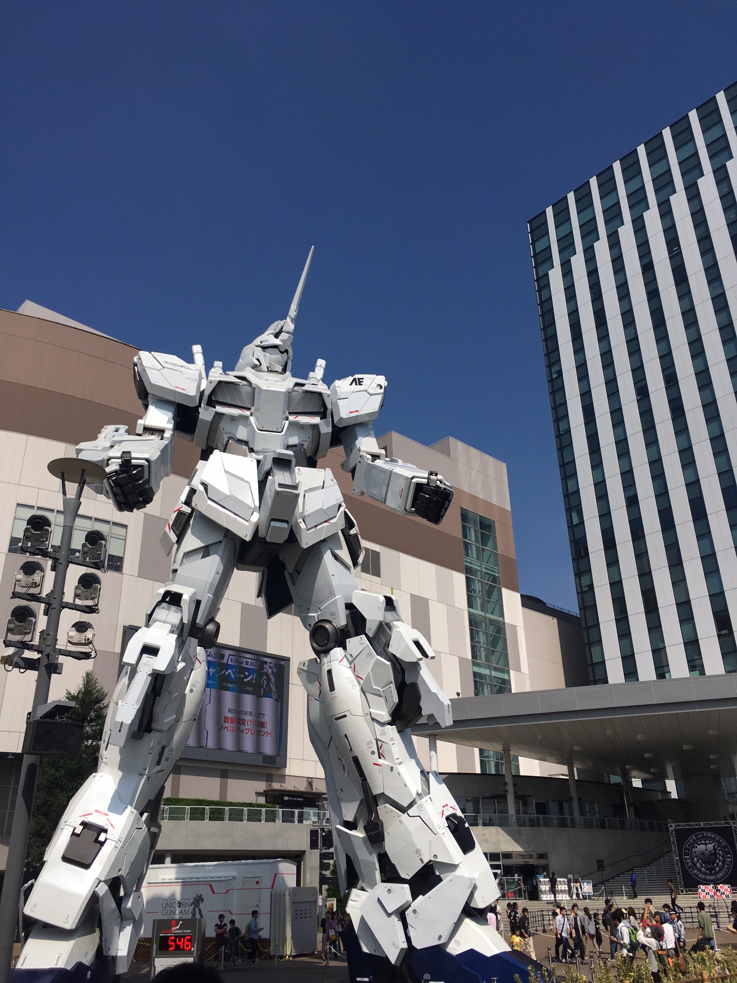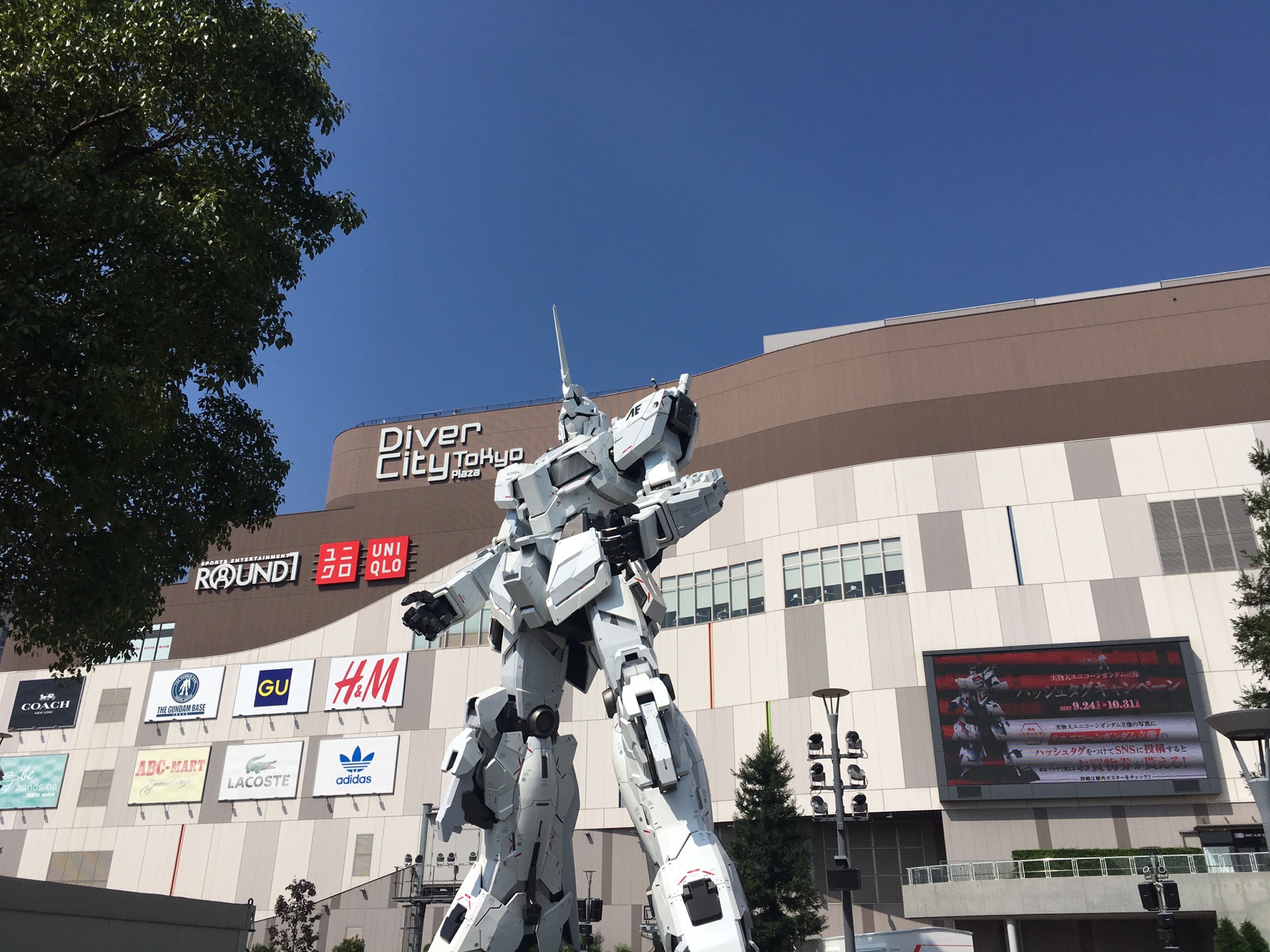 台场1:1高达,算是台场的地标了。前不久才将旧的拆除换了这个独角兽,网上看过视频会发光而且部分部位可动,变形。然而因为刚刚安装好正在测试阶段,所以我去的时候并不会变得炫酷。