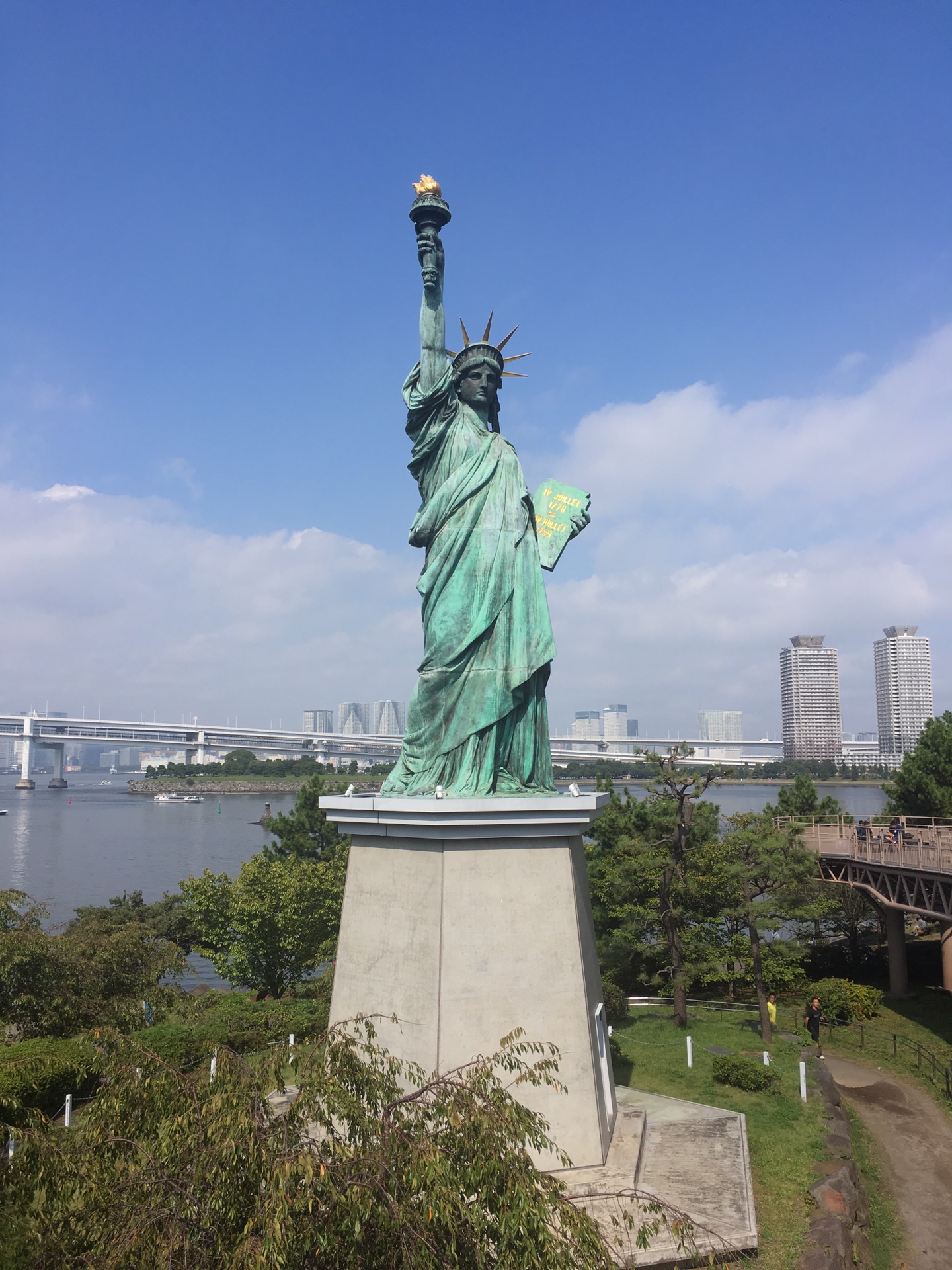 东京湾边台场的另一个地标:伪-自由女神像。复制的法国自由女神像,与身后的的彩虹桥一起成为台场著名的风景。