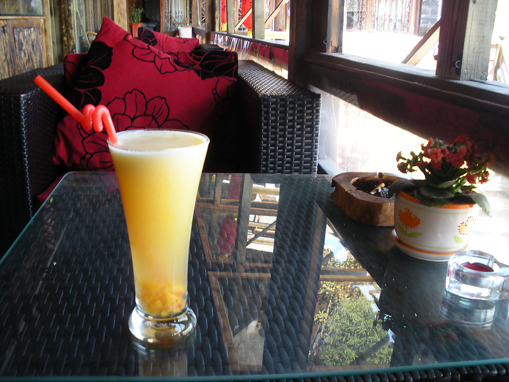 由于个人对两只猫的喜爱,在丽江 的最后一天又来到这里,依然是阳光,微风,音乐,不一样的小粒咖啡,还有一只睡在我脚边的狗狗...