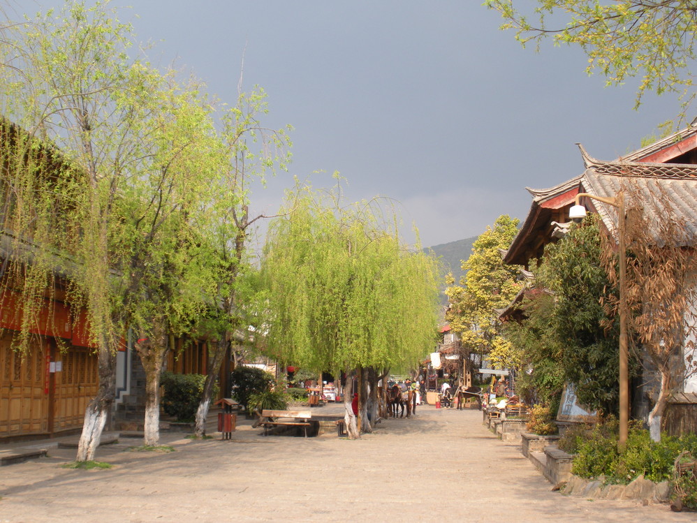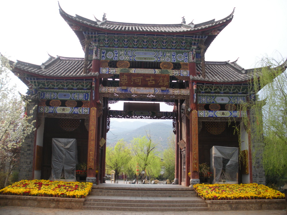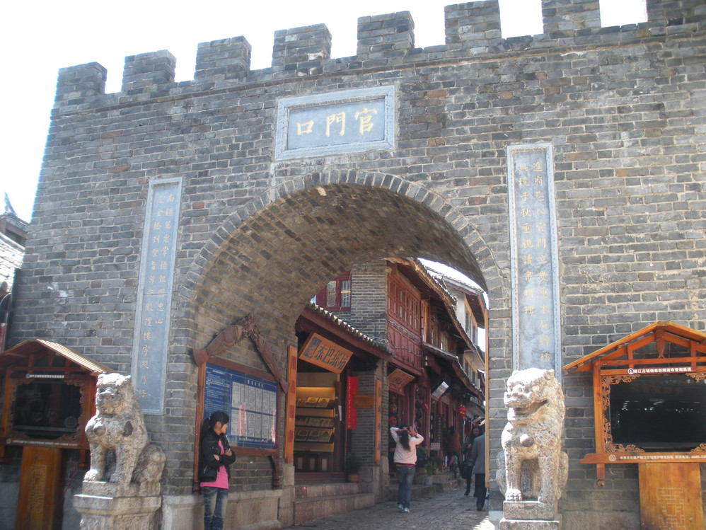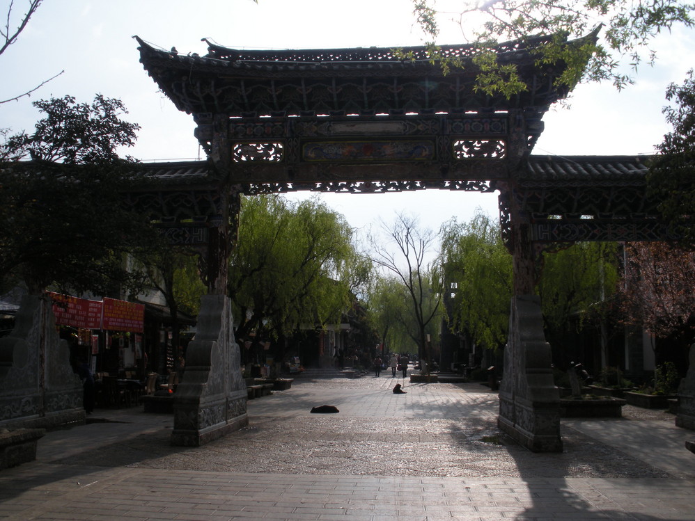 束河 古镇,去的时候没有人收门票,听说有时候还是会收的,如果遇到,可以从大门右边的那条路进古城。