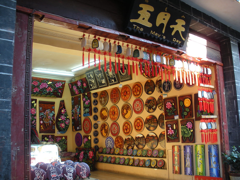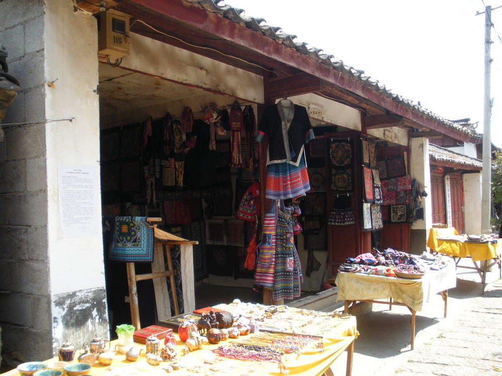 束河 给人感觉很安静,人不是很多,但是依然看到了些旅行团的身影,这边的东西都很便宜,要给朋友带礼物基本可以在这里搞定。